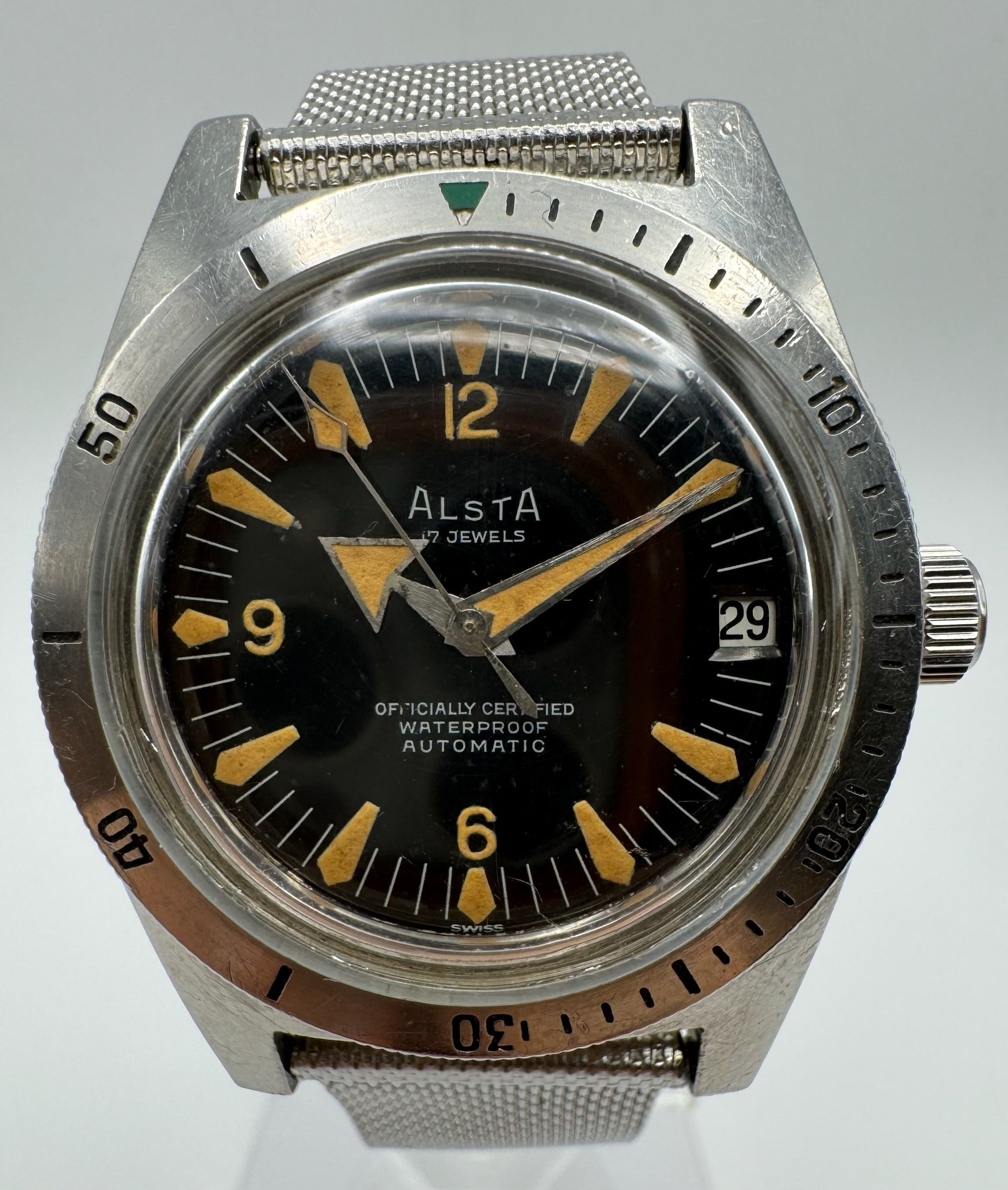 Vintage Alsta Deep Diver - Rare 1960s Full Steel with Pumpkin Patina Dial