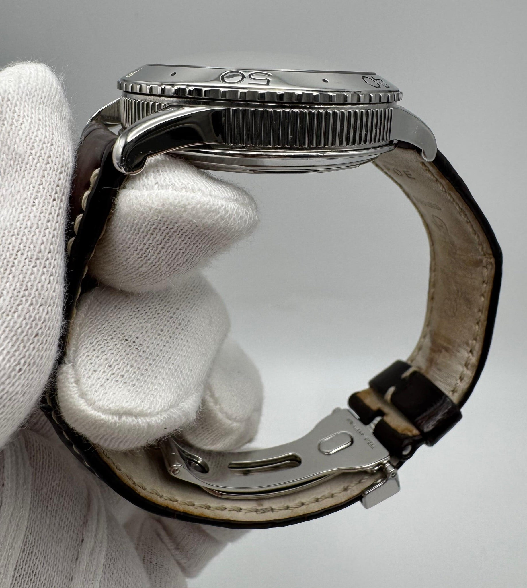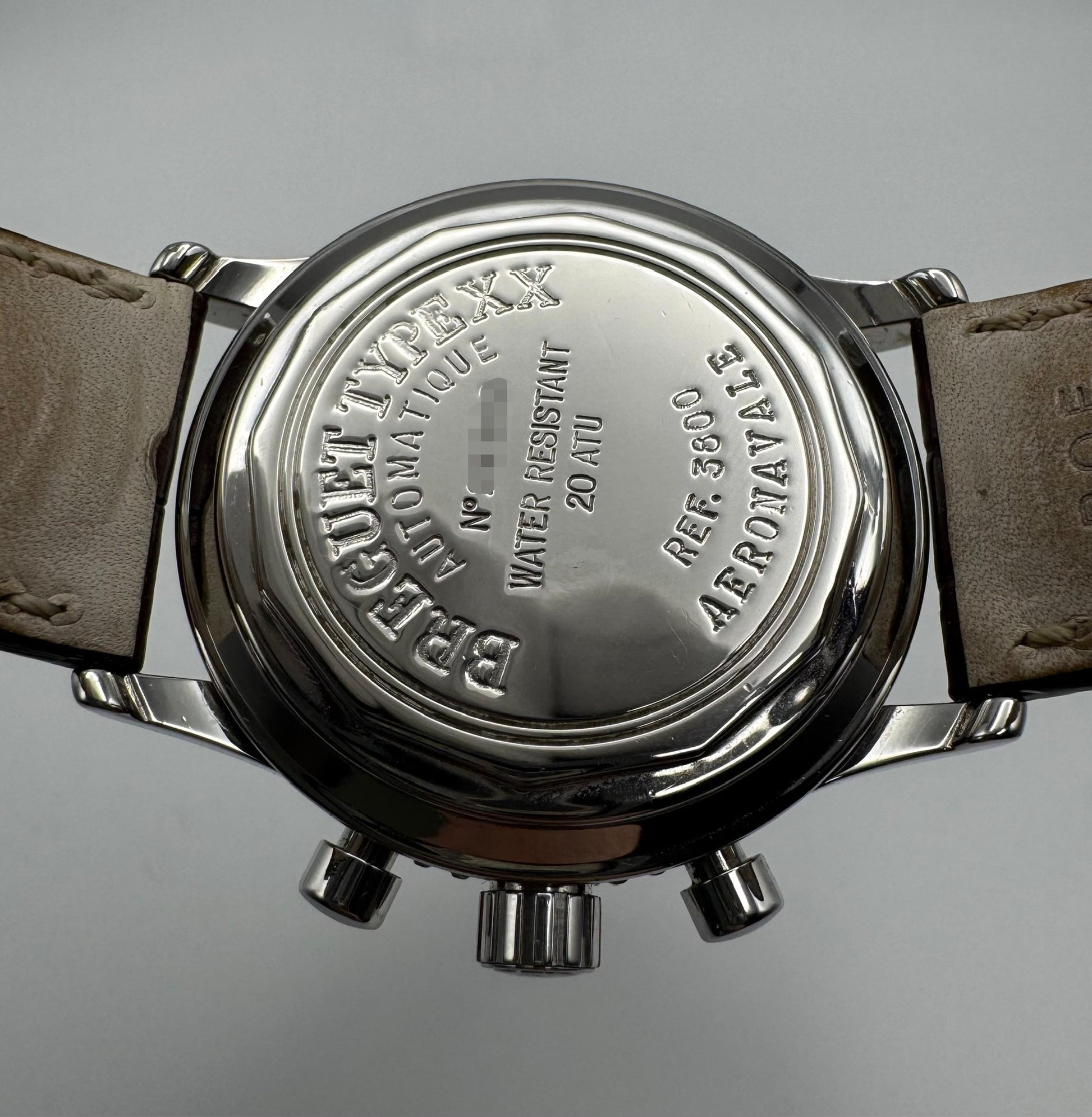 This Breguet Type XX Pilot Chronograph is presented in all-original condition and remains in very good overall shape. The stainless steel case shows minimal signs of wear, with only light hairlines primarily visible on the bezel, preserving the strong and purposeful character of the model.