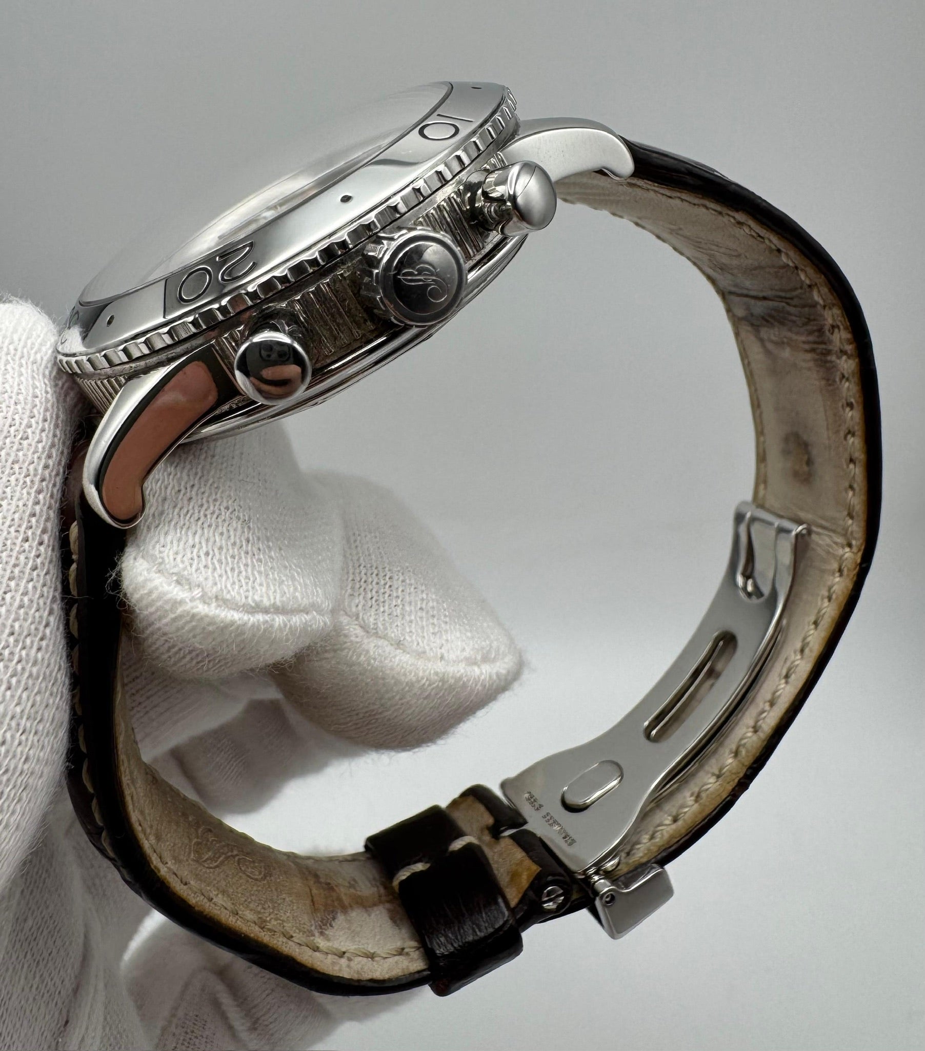 The watch is fitted with its original brown Breguet alligator strap, which remains in very good condition, and is paired with the original folding clasp. The movement has been checked and is running perfectly, with all chronograph functions operating as intended.