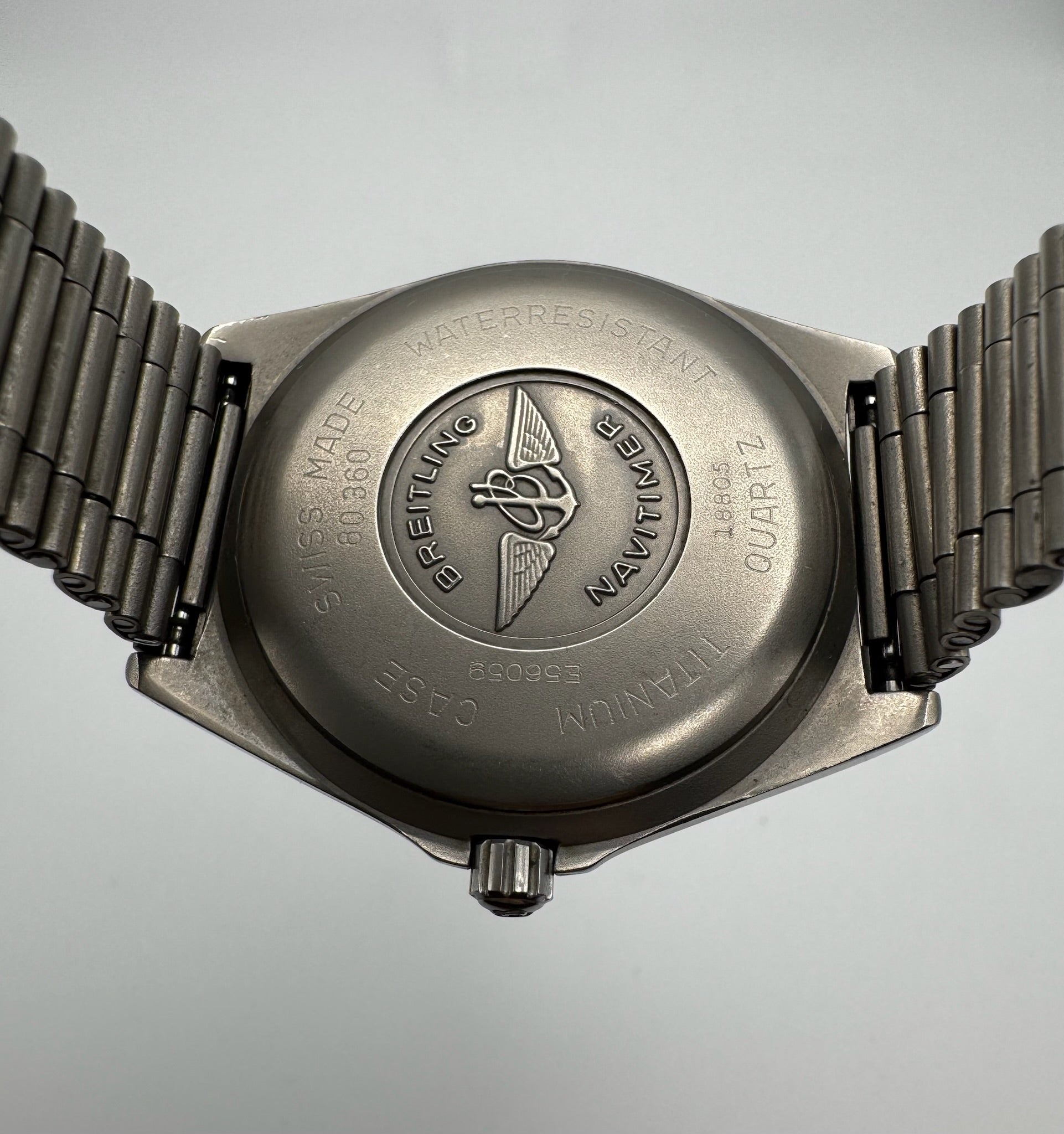 This particular full-titanium variant is notably rarer than the more common two-tone versions, making it a sought-after piece among Breitling enthusiasts and collectors alike.