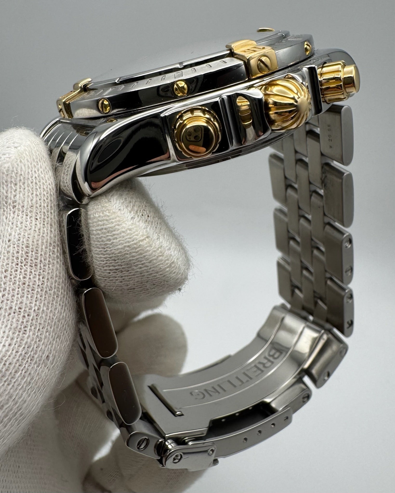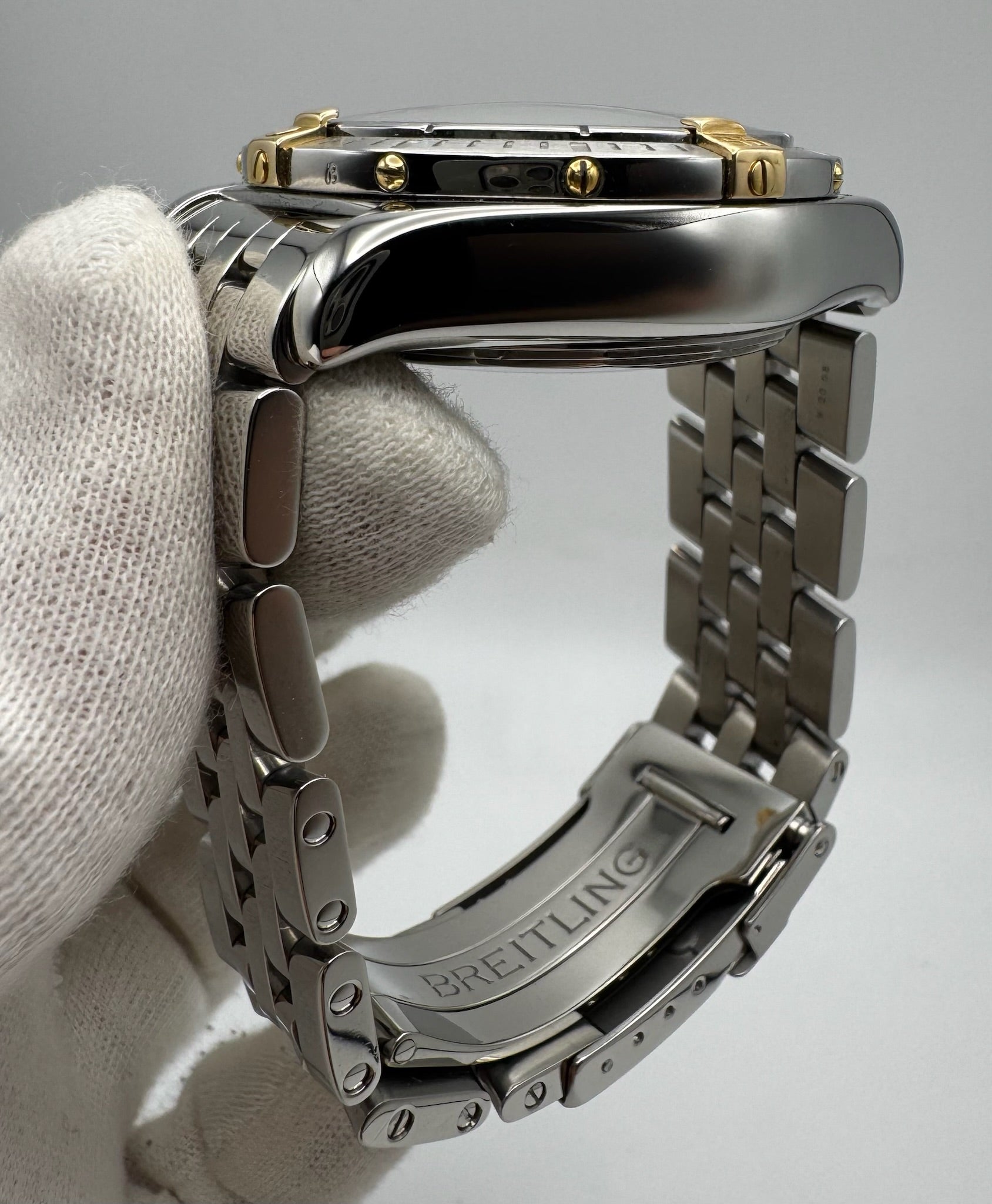 The Chronomat Evolution represents a key chapter in Breitling’s modern history, combining the brand’s aviation heritage with a refined, contemporary aesthetic. Designed as a versatile luxury sports chronograph, the Evolution features a powerful automatic movement, strong case architecture, and distinctive rider-tab bezel that enhances both function and recognition. In two-tone configuration, the model balances technical performance with a more elevated visual presence, making it suitable for both daily wear and formal settings.