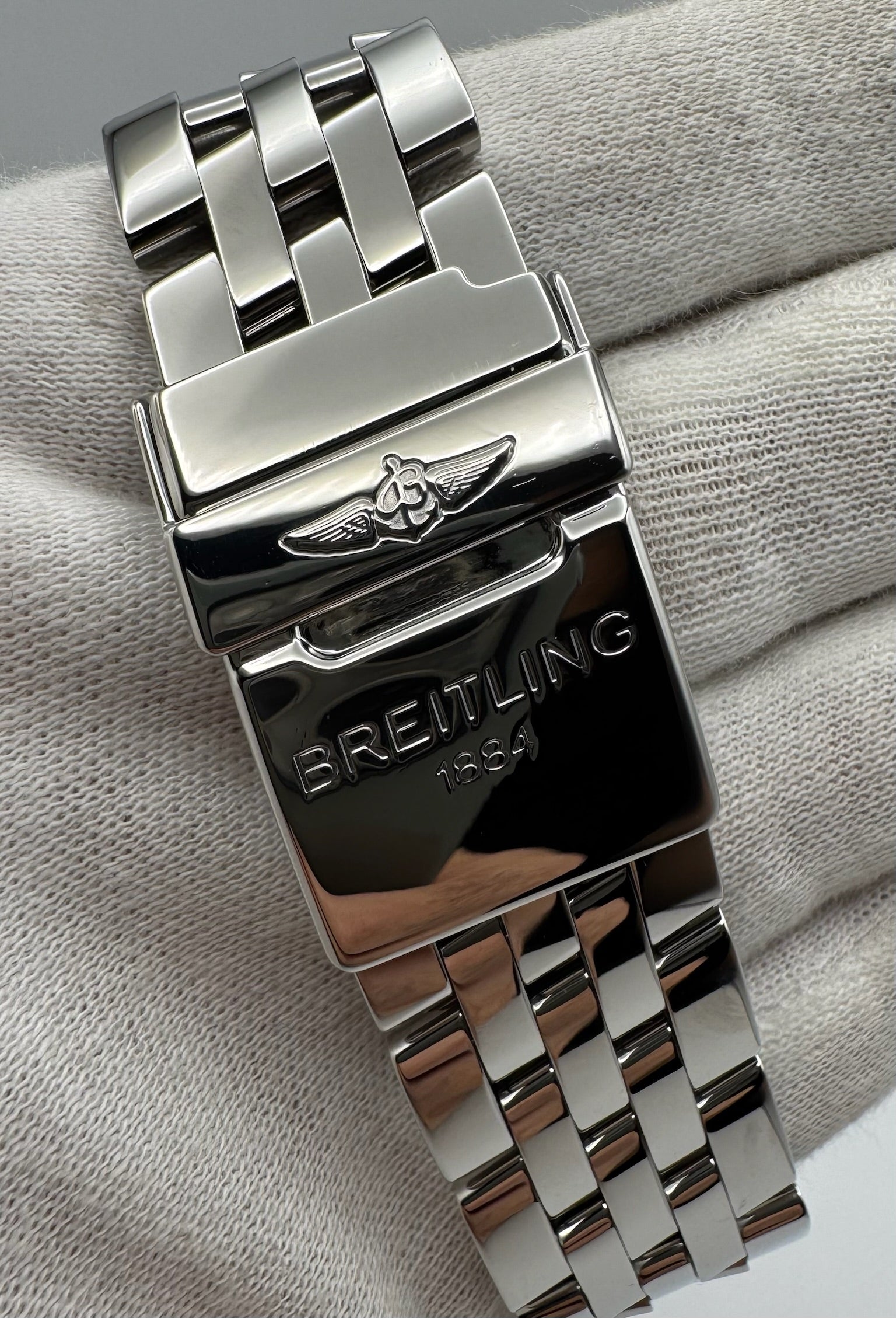 The unidirectional bezel operates smoothly and securely, reflecting the robust construction the Chronomat line is known for. The original Breitling bracelet shows no stretch and comfortably fits a wrist up to approximately 7.2 inches (18.5 cm). Powering the watch is Breitling’s automatic chronograph movement, professionally serviced in January 2026 and functioning properly across all complications.