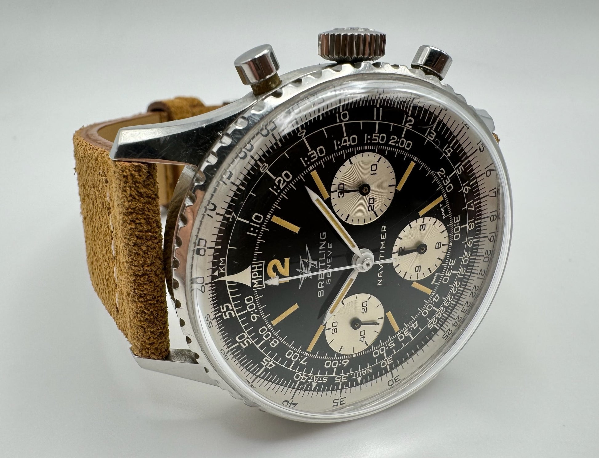 While the movement history is unknown, it has been tested and works accurately, with all chronograph functions operating properly. This model is one of the nicest Vintage Navitimers we’ve encountered in years, an absolutely stunning piece with a rich history.