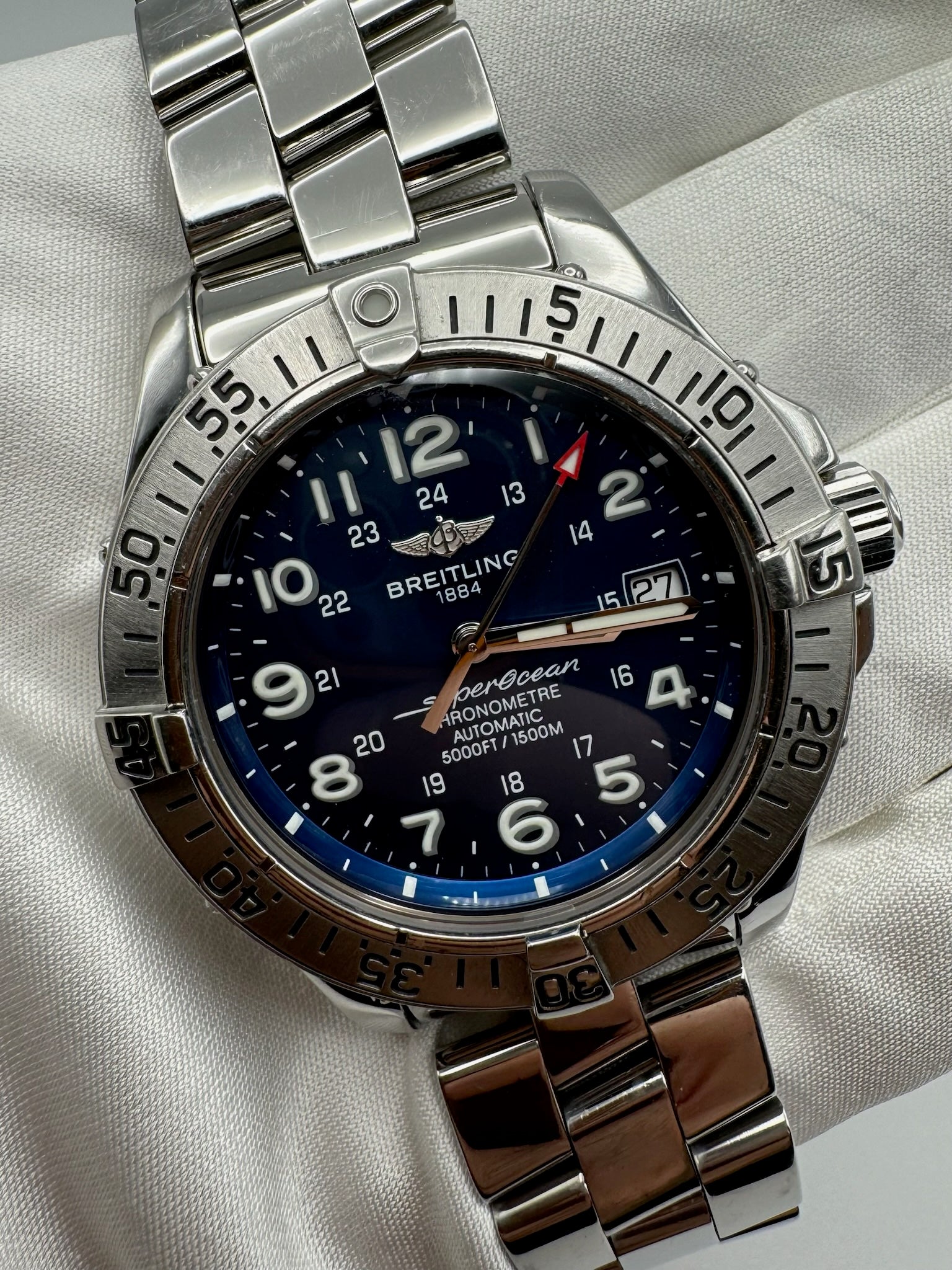 Ideal for those entering the world of luxury watches, the Breitling Superocean offers a perfect blend of functionality and aesthetics. With its pristine condition and classic design, it represents an exquisite choice for discerning enthusiasts seeking both quality and value.