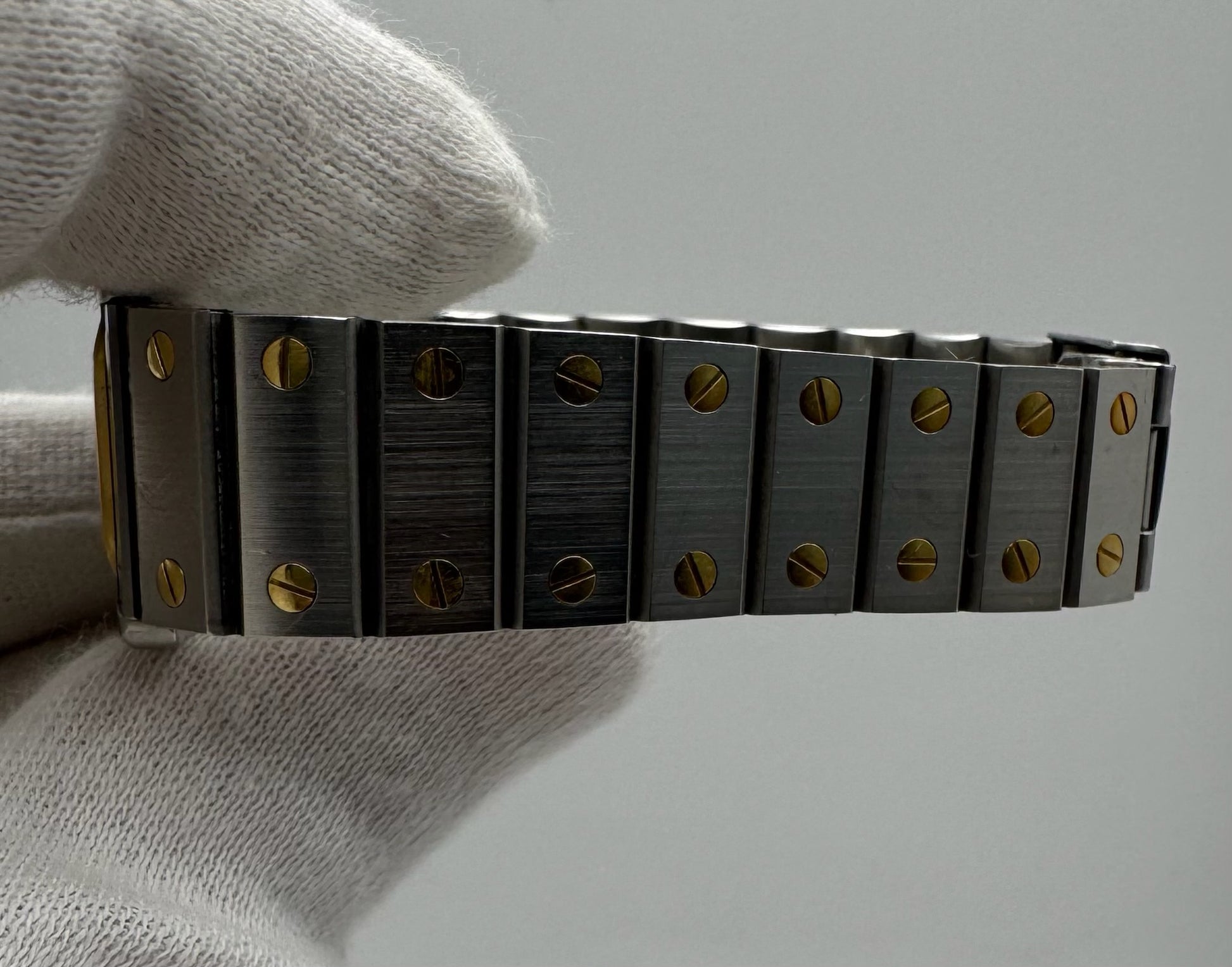 Fitted with its original two-tone bracelet, the links remain tight with light surface scratches consistent with minimal use. The bracelet comfortably wraps the wrist and completes the watch’s refined look.