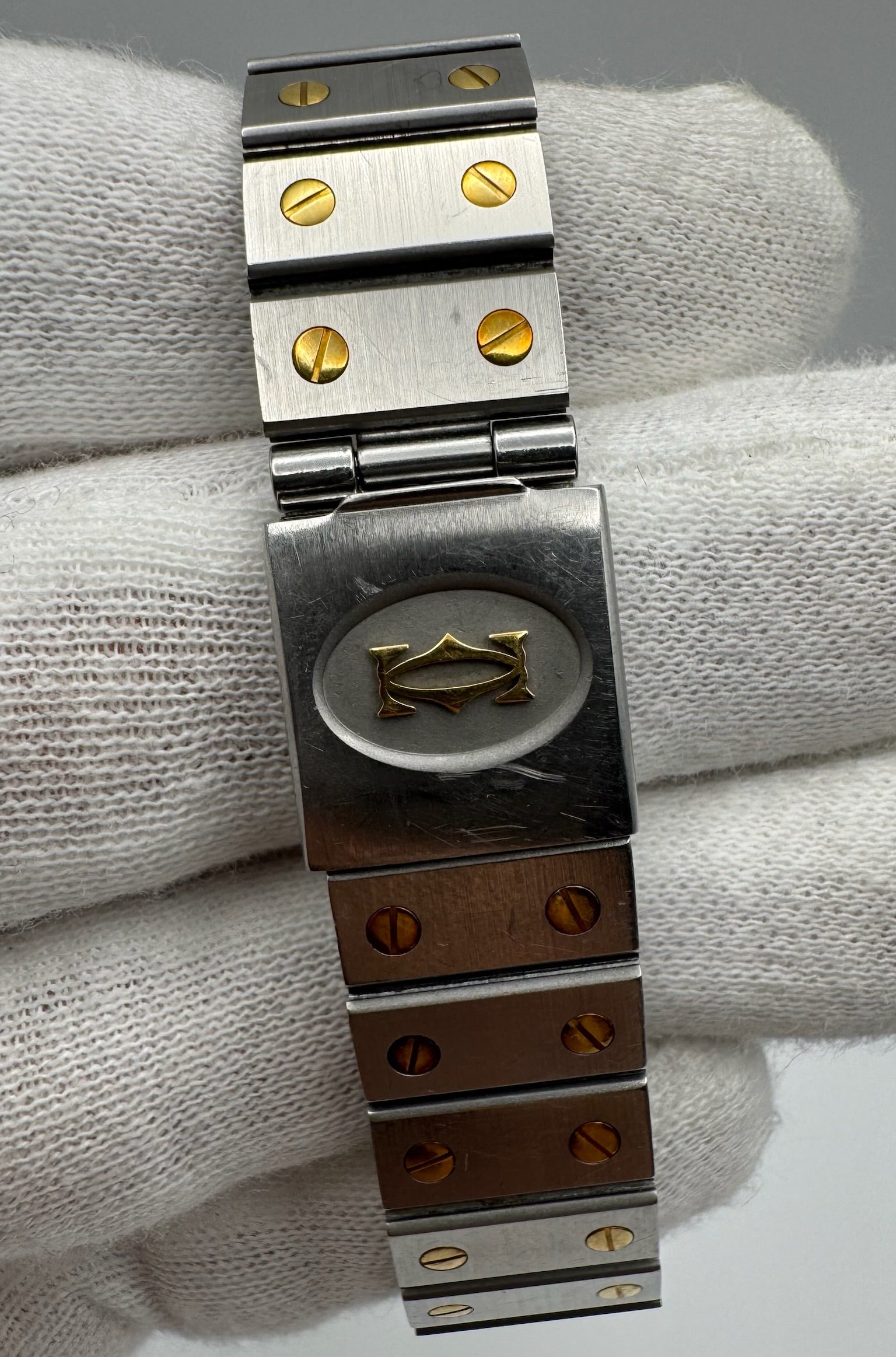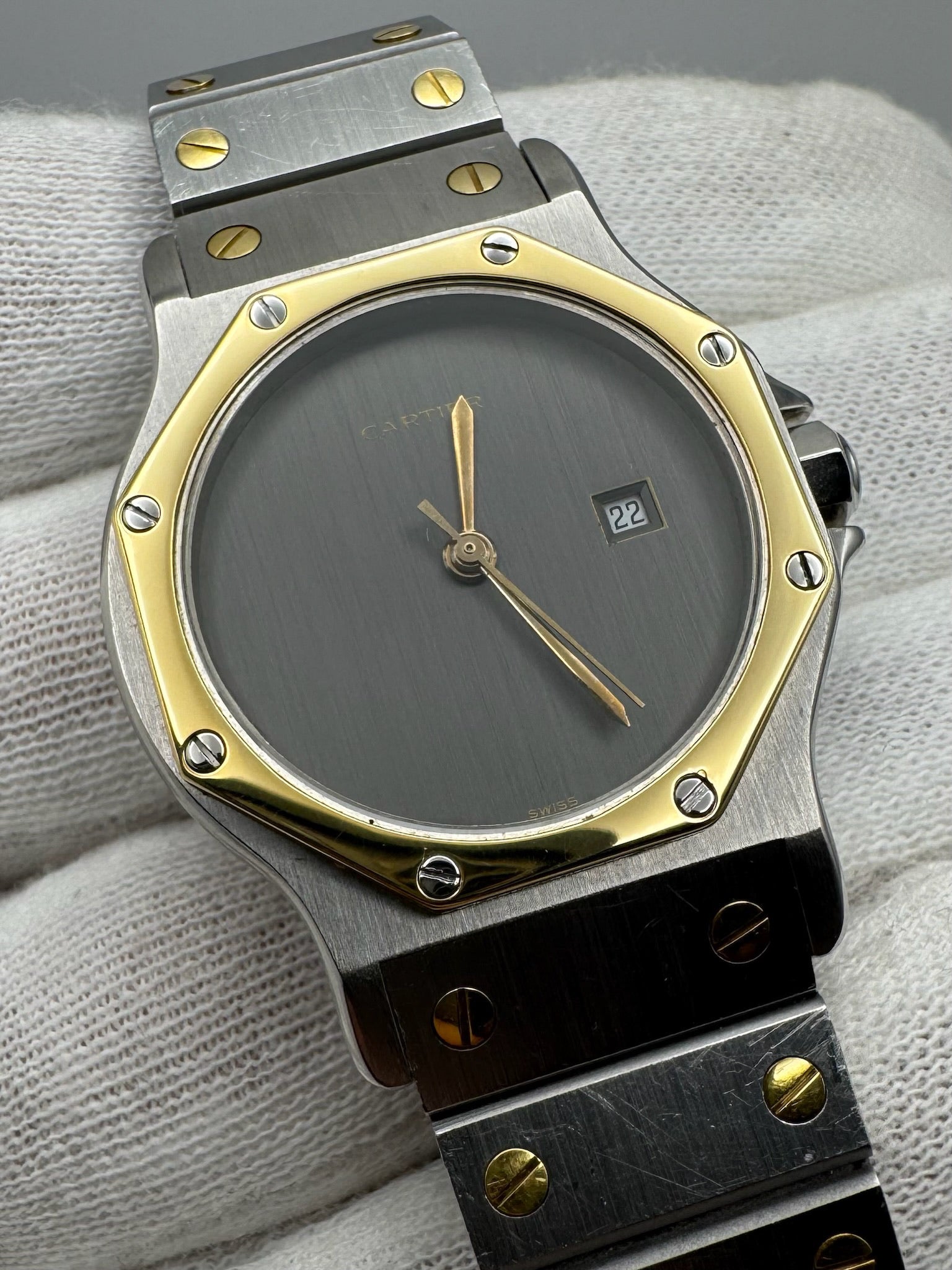 This Cartier Santos Octagon Ref. 2966 is a standout two-tone piece in excellent original condition. The stainless steel and yellow gold case retains its sharp factory finish and shows only minor signs of wear, reflecting careful ownership over the years.