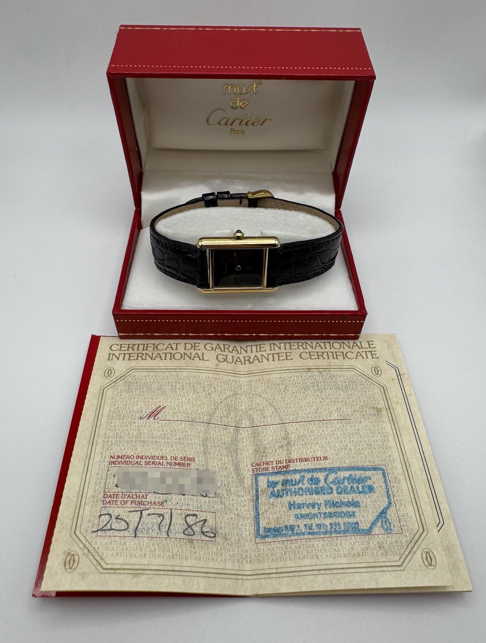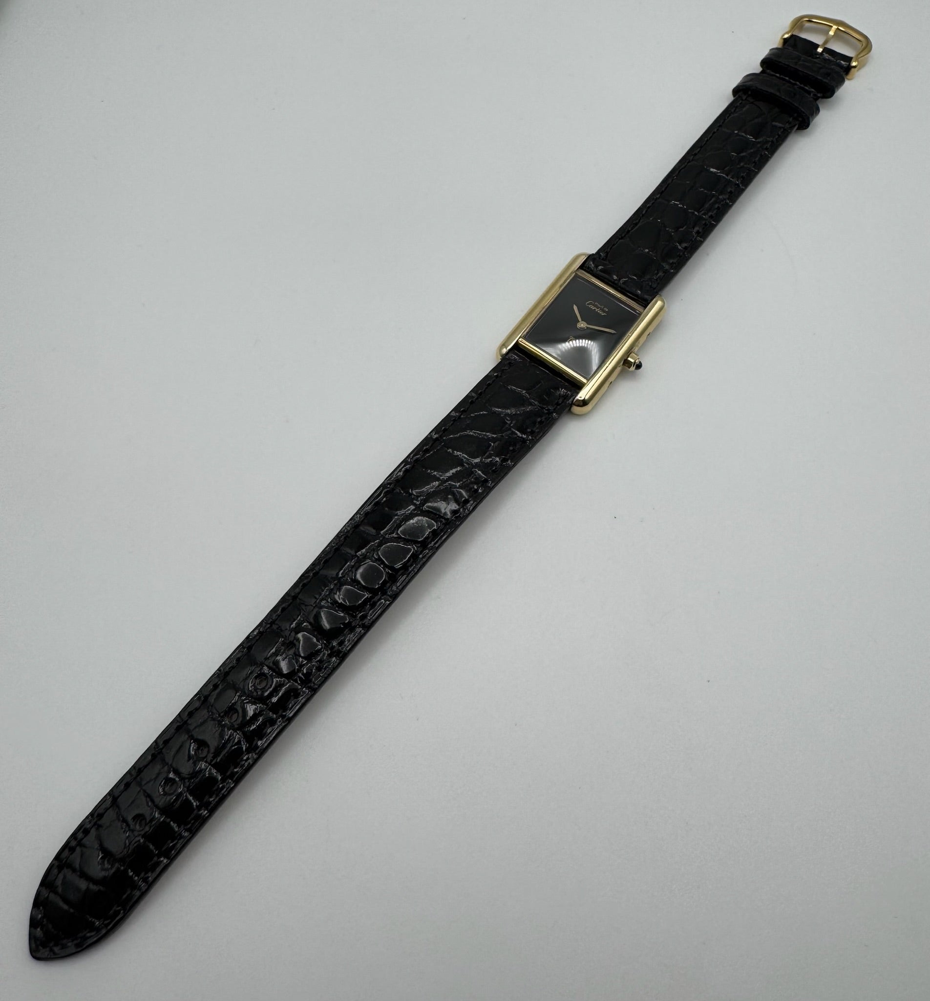 Cartier Tank Vermeil Gold Plated Quartz Black Dial 1986 (Full-Set)