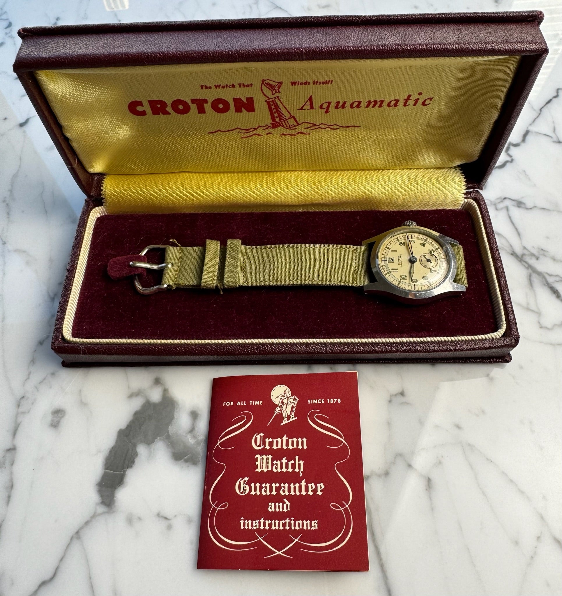 Offered with its original box and papers, this Croton represents a scarce opportunity to acquire a complete and well-preserved WWII military timepiece with genuine provenance and enduring collector appeal.