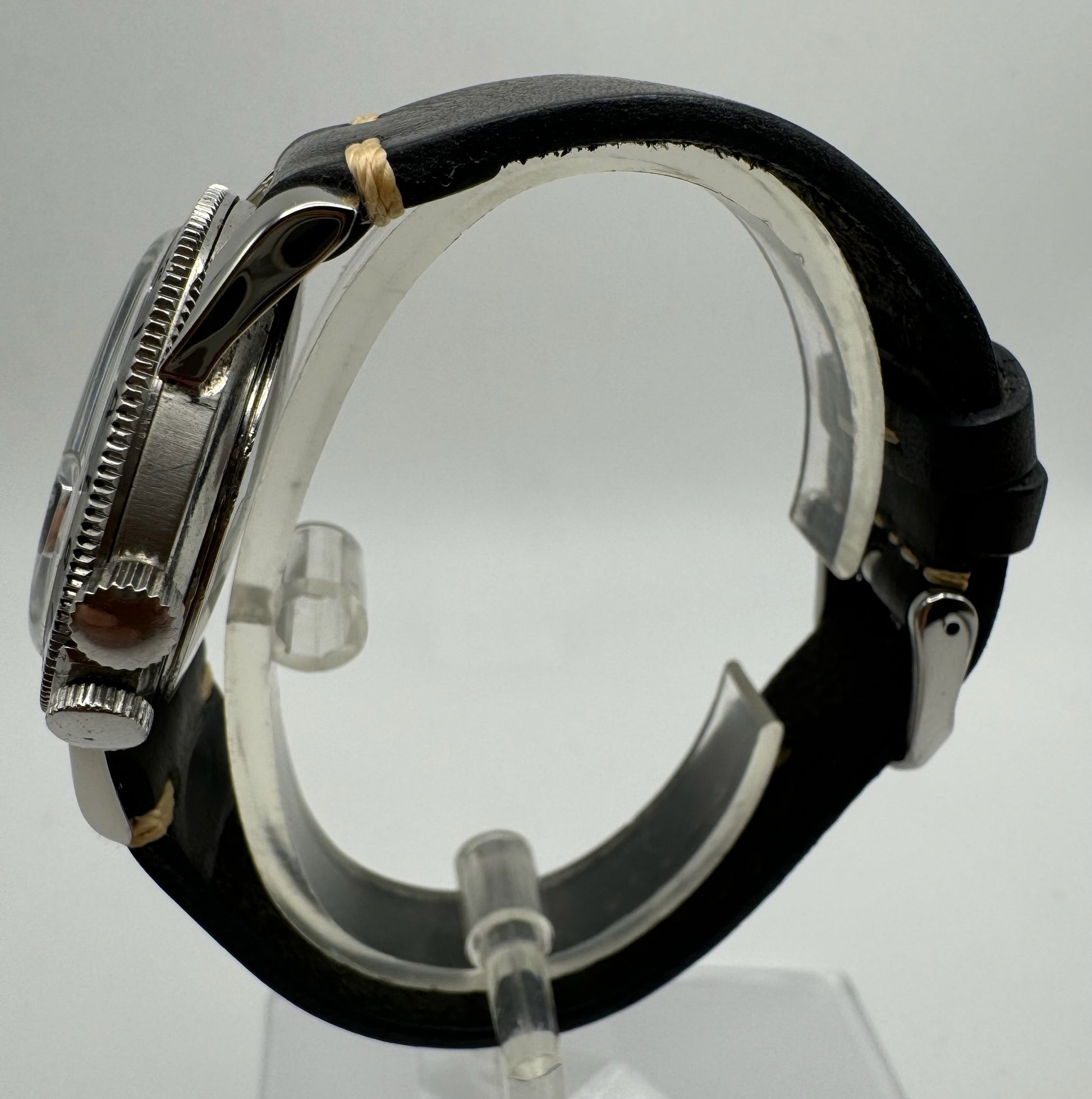 The original black tritium dial is immaculate, with no signs of aging or damage, and is complemented by period-correct hands that match perfectly, maintaining the watch’s authenticity and charm. The dial’s tritium lume has aged beautifully, adding a touch of vintage allure.