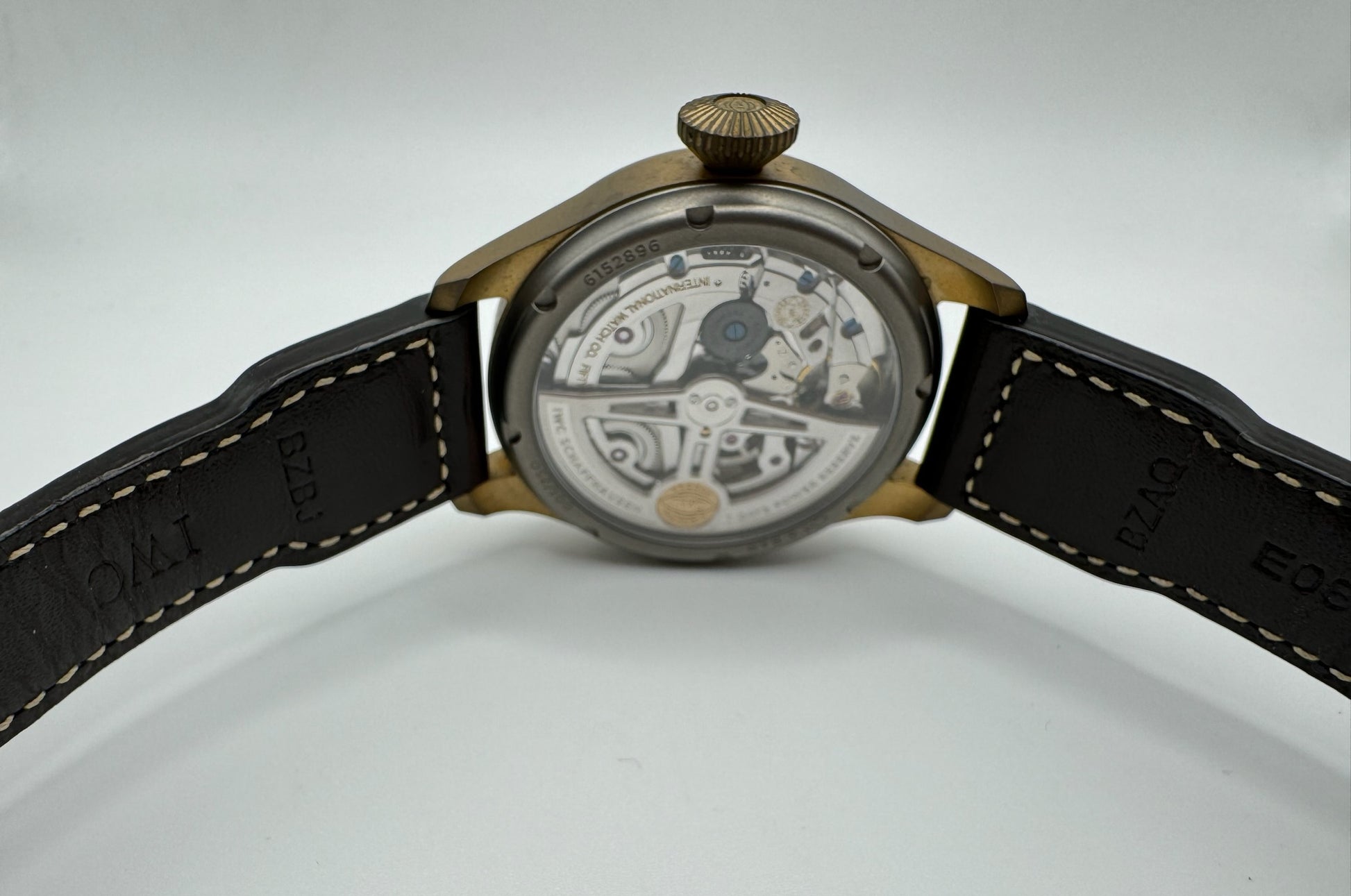 The striking green dial with gold hands complements the bronze case beautifully, creating a military-inspired yet elegant look. This unique dial design is the only one made by IWC that features all the numbers complete and uncut, enhancing its readability and symmetry.