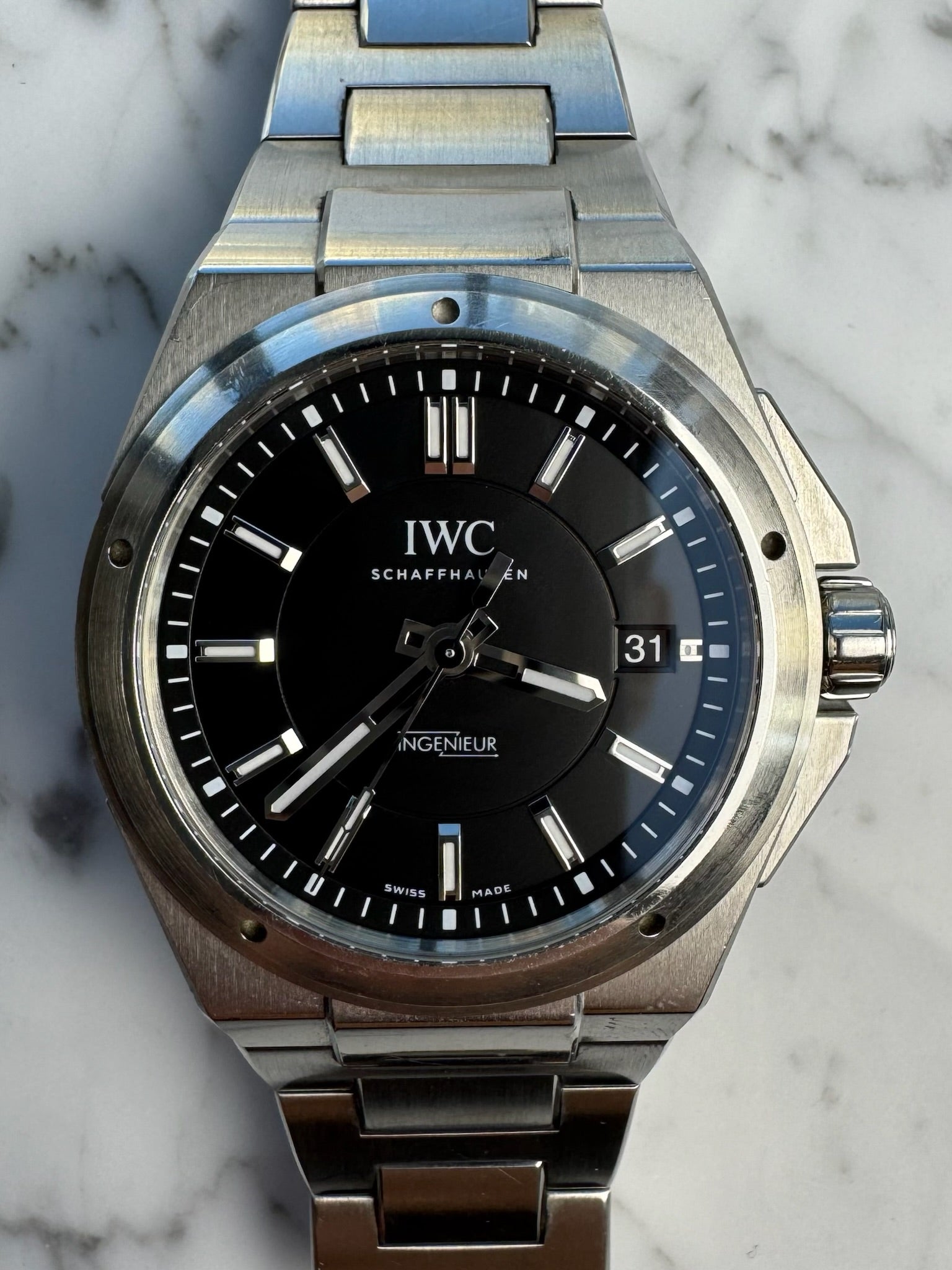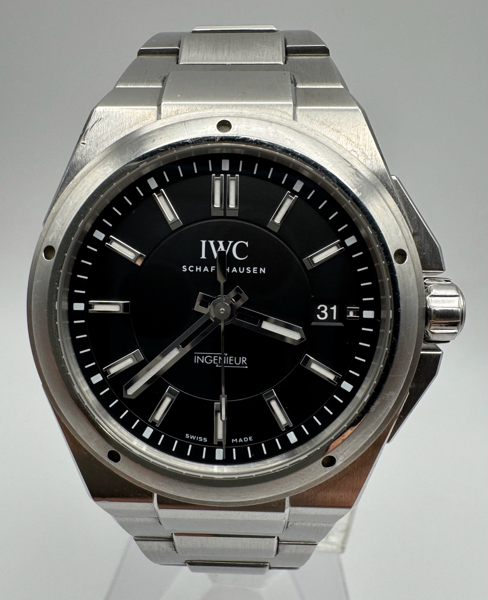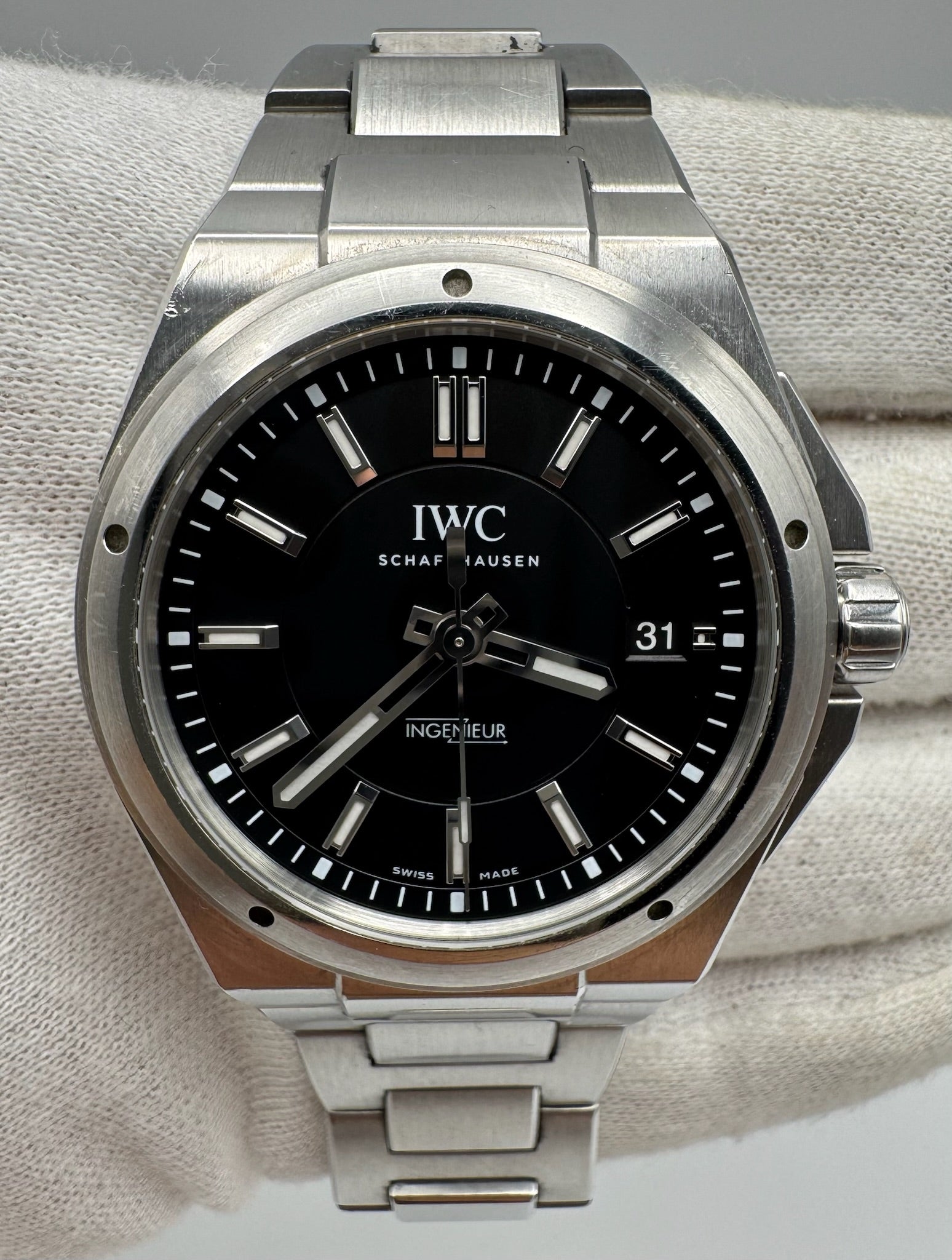 The black dial is exceptionally clean and well preserved, offering strong legibility and a balanced, technical aesthetic that defines the Ingénieur line. The stainless steel bracelet is complete with all links, maintaining a solid and comfortable fit on the wrist.
