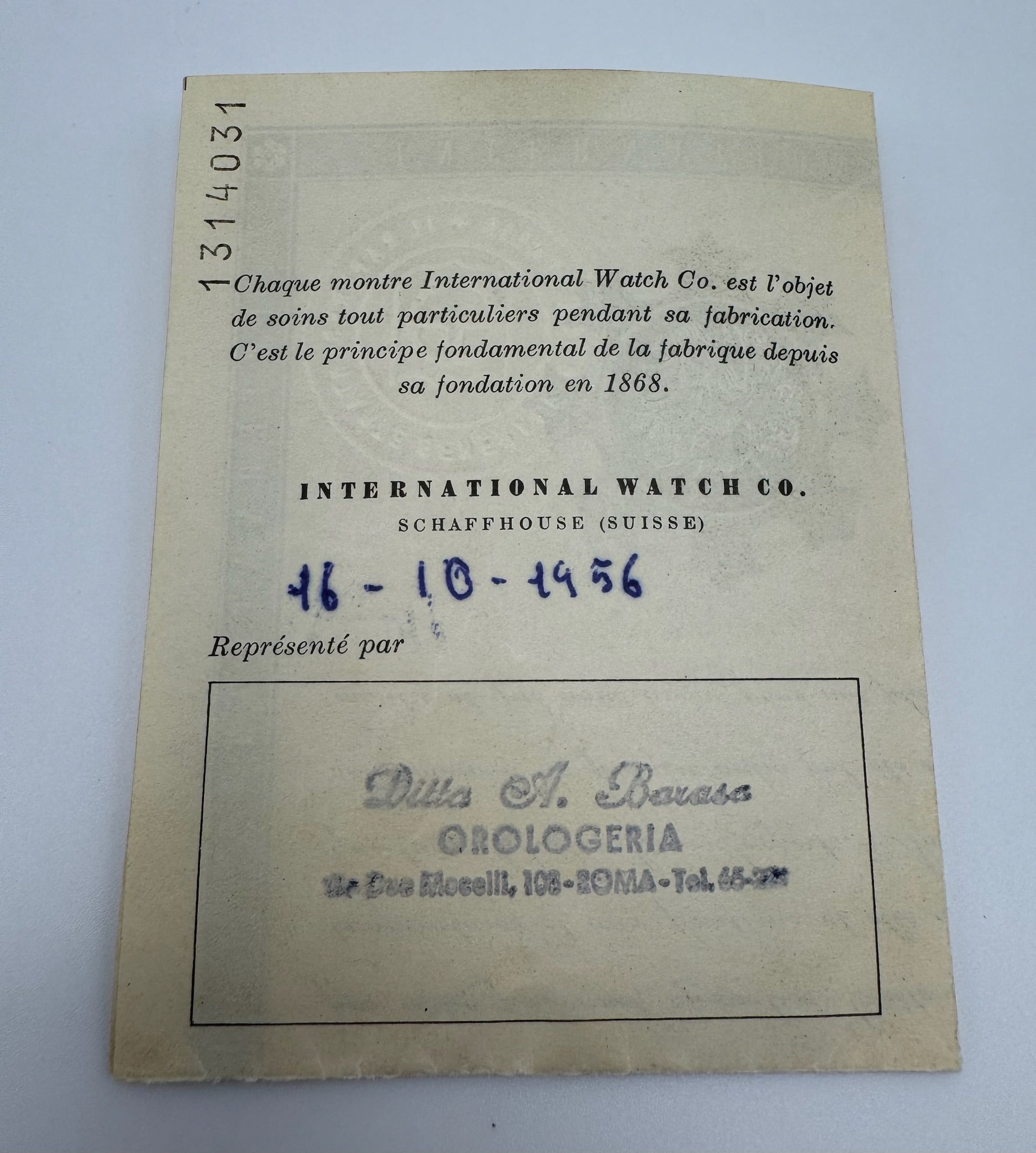 The watch comes with the original IWC papers from 1956, further cementing its value and historical significance. This timepiece is truly rare and highly collectible, a perfect addition for any watch enthusiast.