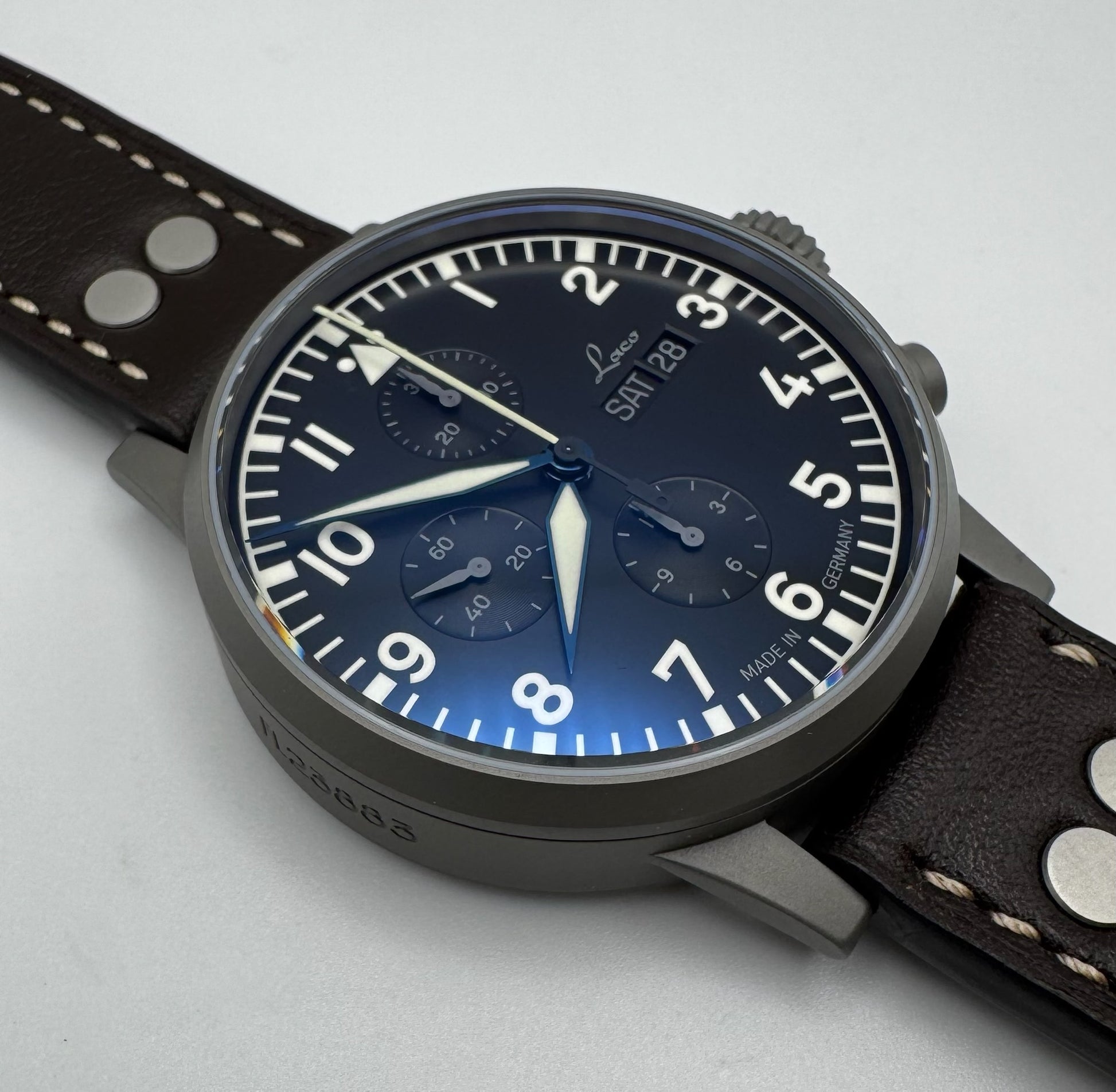 Laco is a German watch manufacturer with a storied history in aviation timepieces, best known for producing pilot’s watches for the Luftwaffe during the 1940s. The brand continues to honor this legacy with modern interpretations that retain the authenticity and precision of its early designs. The Laco Pilot München Chronograph Ref. 862124 exemplifies this tradition, combining vintage-inspired aesthetics with contemporary engineering. Produced in a limited edition of only 200 pieces, this chronograph showcases Laco’s craftsmanship and dedication to aviation heritage, making it a standout piece among modern pilot watches.