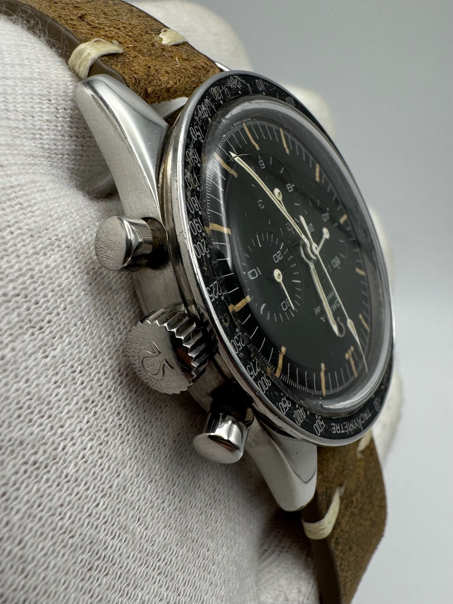 This reference holds a special place in Omega’s history, being the last straight-lug Speedmaster worn by astronauts during NASA’s Gemini missions. The tropical dial further enhances its desirability, making it one of the most collectible variants among Speedmaster enthusiasts.