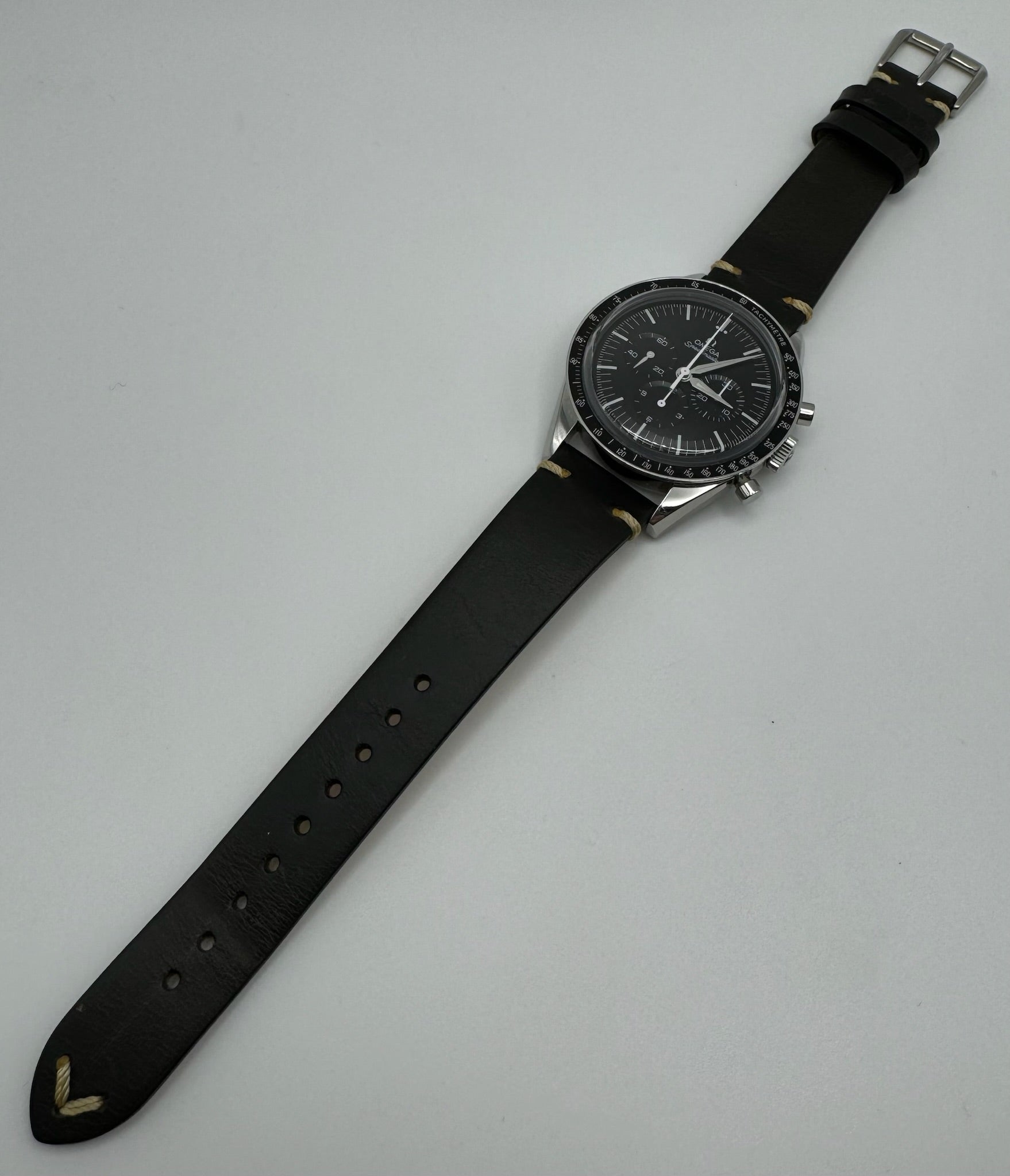 Introducing the Omega Speedmaster First Omega In Space (FOIS), Ref: 311.32.40.30.01.001, a timeless tribute to space exploration and Omega's enduring legacy. This 39.7mm timepiece is presented in great condition, retaining its original, unpolished charm while showcasing only minor signs of wear that speak to its authenticity and history. The movement operates with impeccable precision, keeping accurate time and ensuring reliability in every moment. As a symbol of Omega's storied connection to space exploration and its iconic Speedmaster lineage, this FOIS model is both a tribute to the past and a testament to enduring excellence.