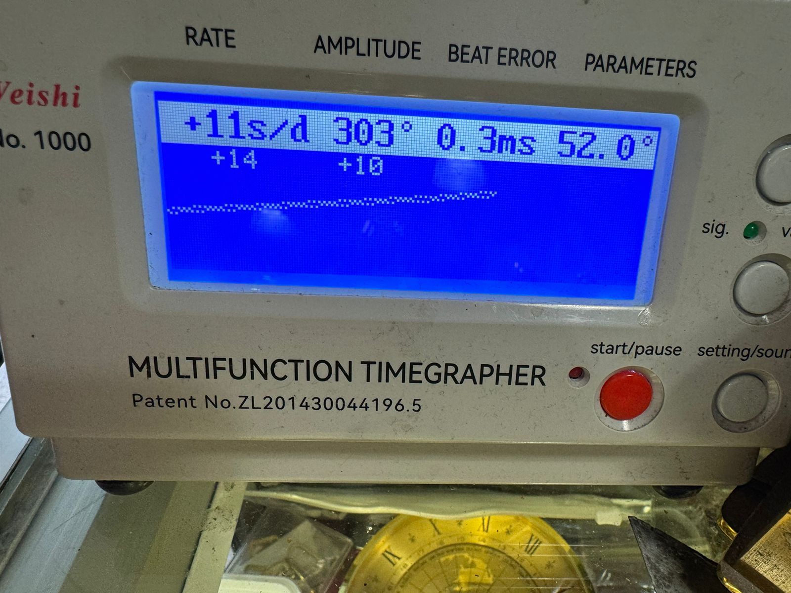 - Service History: Unknown. Running at +11s per day. With 303 amplitude.