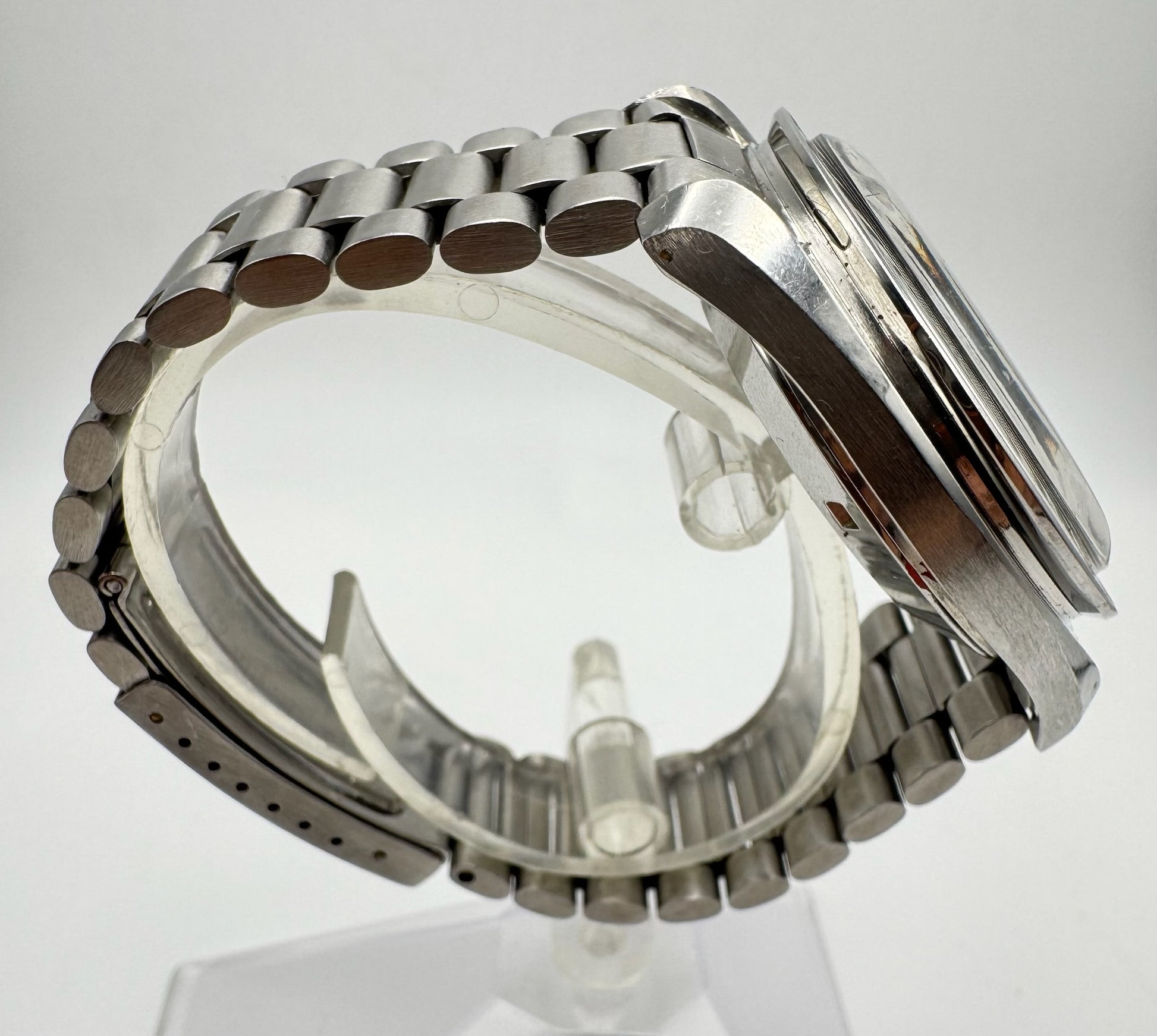While the movement remains sealed and unopened, it surprisingly keeps accurate time, attesting to the quality and durability of this legendary timepiece. For buyers seeking additional peace of mind, servicing can be arranged upon request for an additional fee. The bracelet is in excellent condition, fitting a wrist size of up to 7.5–7.6 inches (19 cm), with an extra link available if needed.