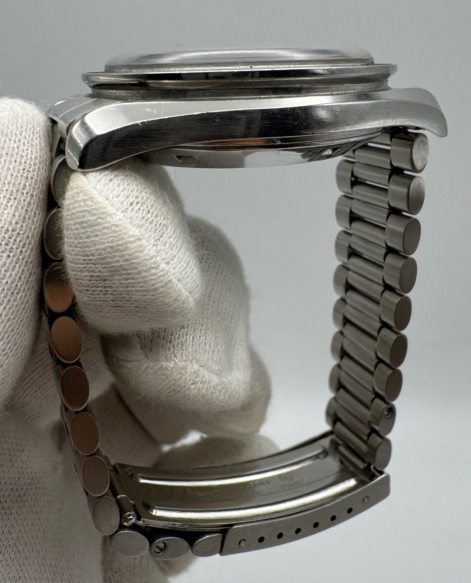 The 861 caliber movement was professionally serviced in November 2025 and runs precisely, with all chronograph functions operating as intended. The sturdy steel bracelet fits up to a 7.5” (19cm) wrist, with extra links available upon request.