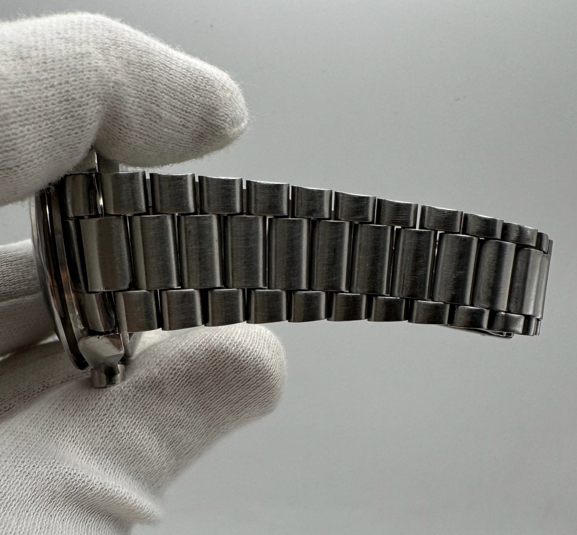 Paired with its original bracelet, this watch shows minimal stretch and comfortably fits wrists up to approximately 8 inches (20cm). The movement was serviced about a year ago by the previous owner, ensuring precise timekeeping and fully functional chronograph performance.