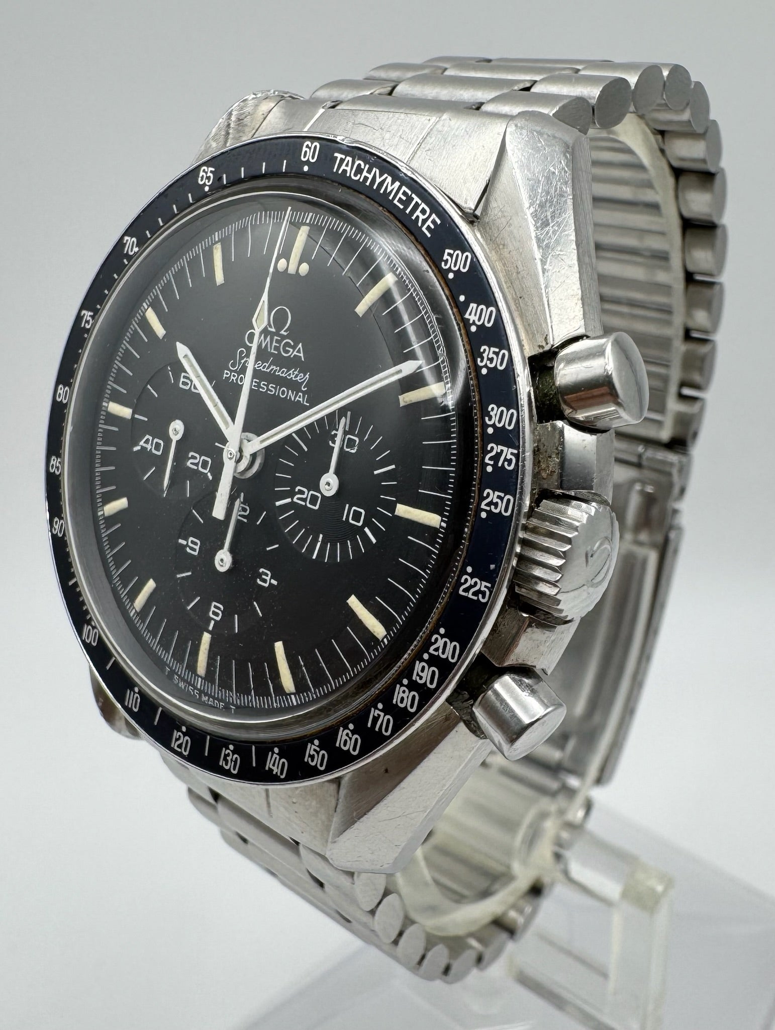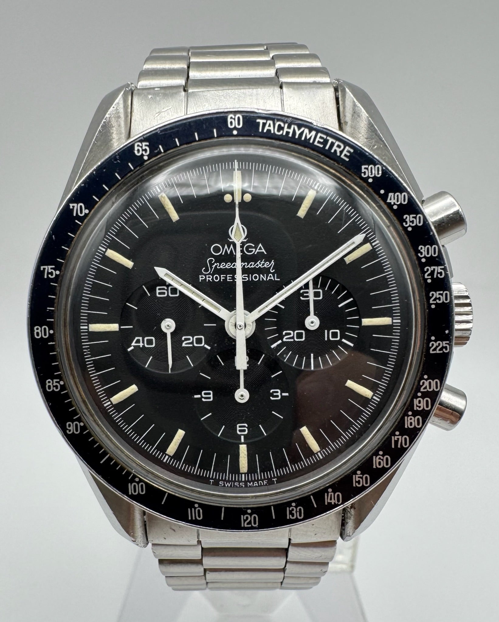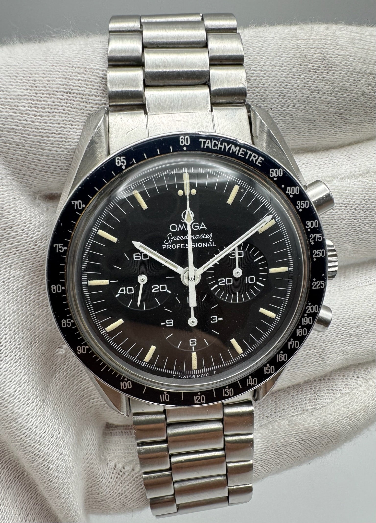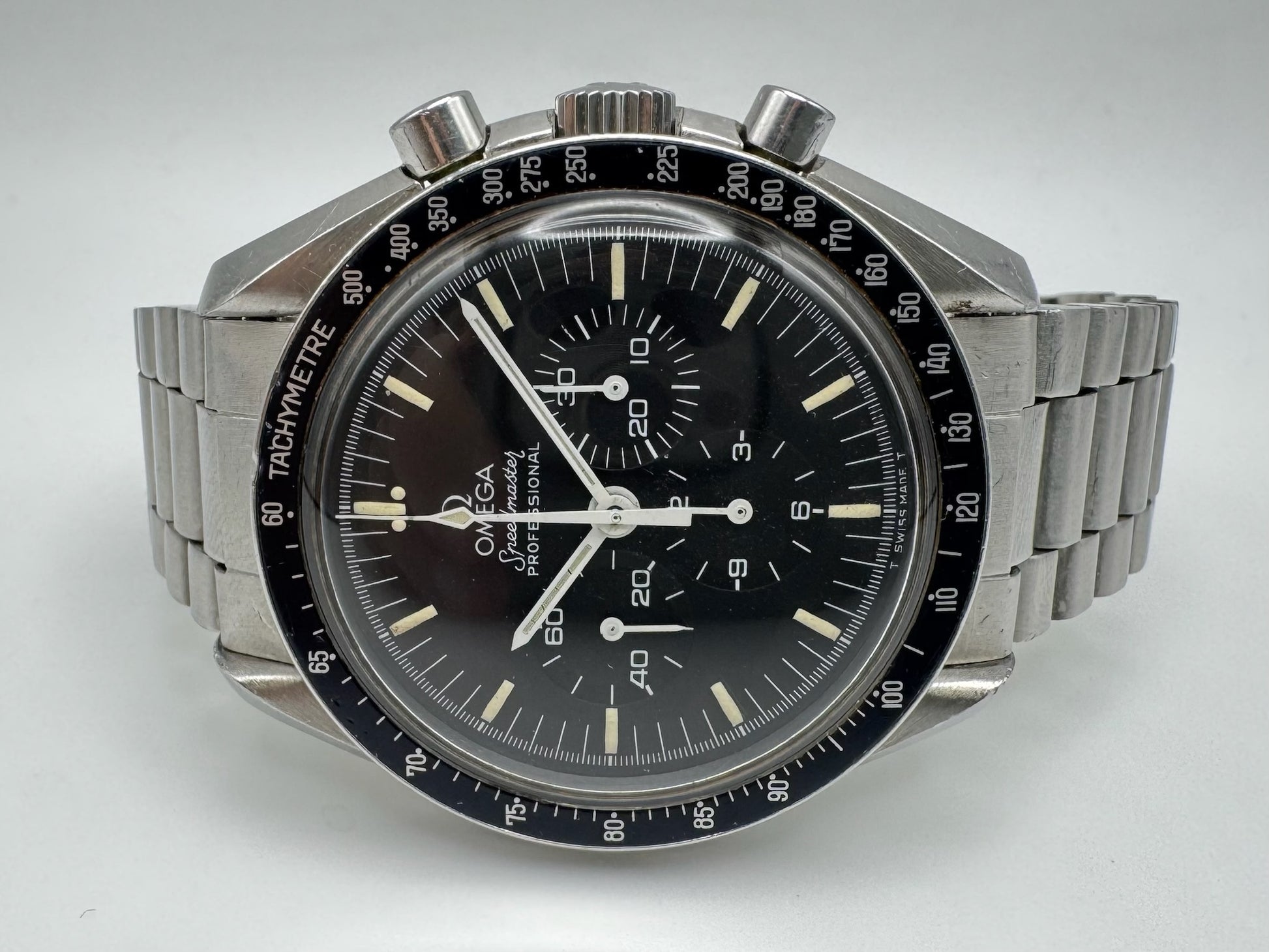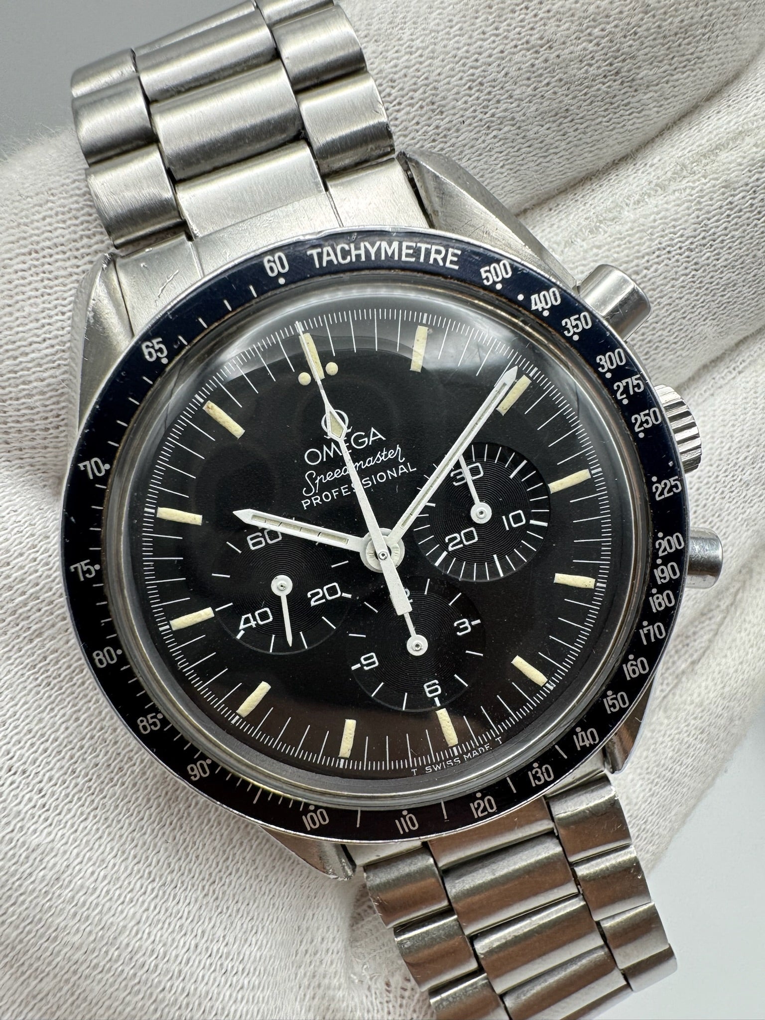 Omega Speedmaster Professional Moonwatch Full Steel Tritium Dial Blue Insert 1970’s (Unpolished)