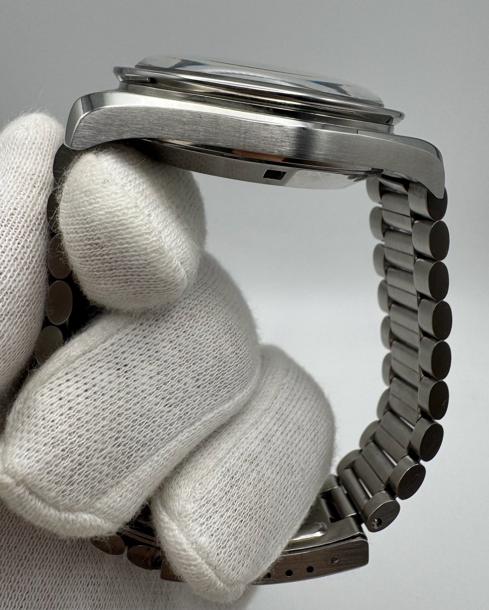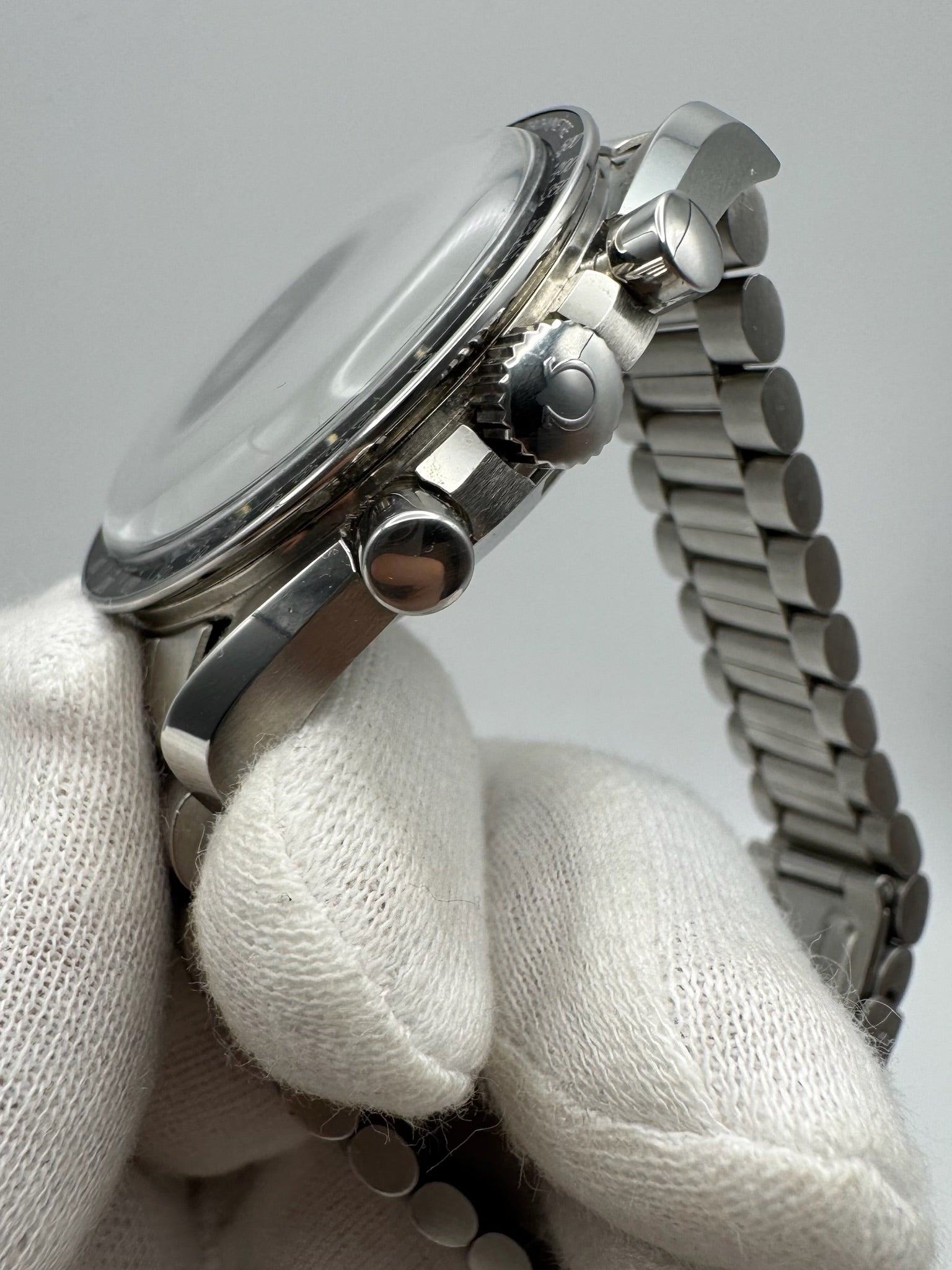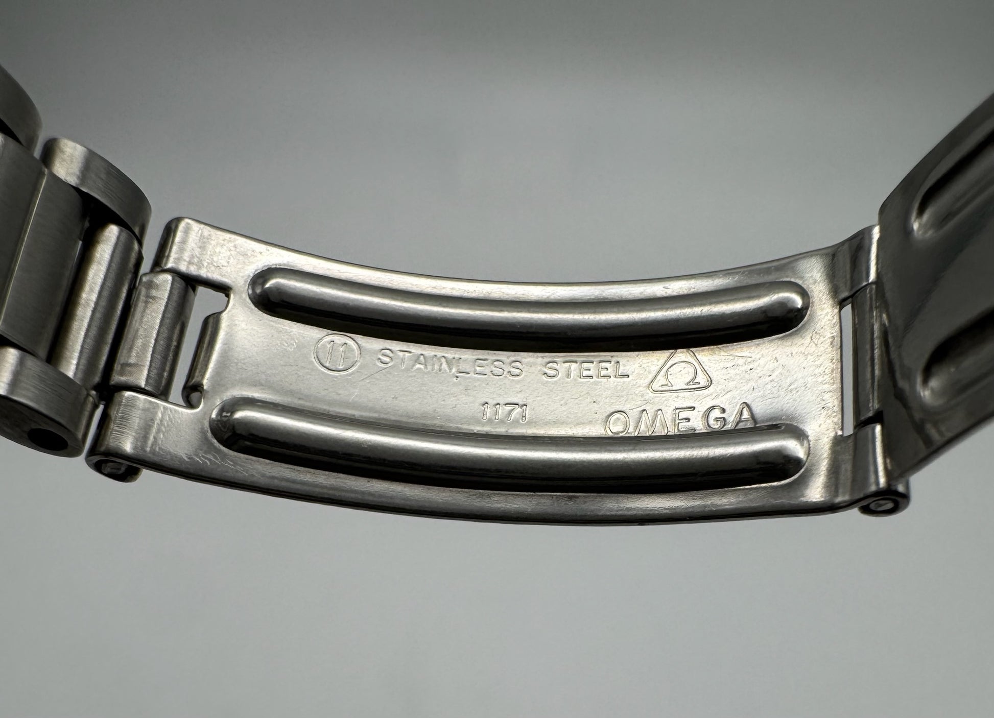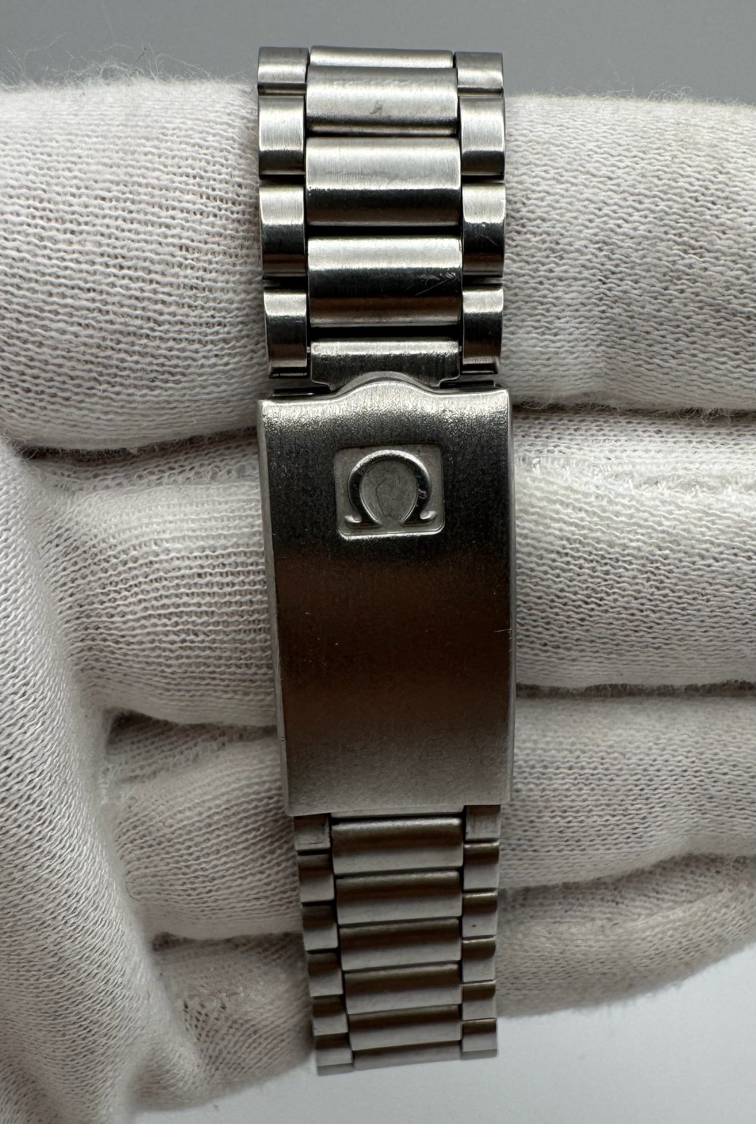 Fitted with its original Omega plexiglass crystal, the watch shows no major scratches or cracks, contributing to its overall outstanding presentation. The 1171 bracelet is tight and solid, with very minimal stretch. It currently fits up to a 7.5” (19cm) wrist, and additional links can be supplied upon request.