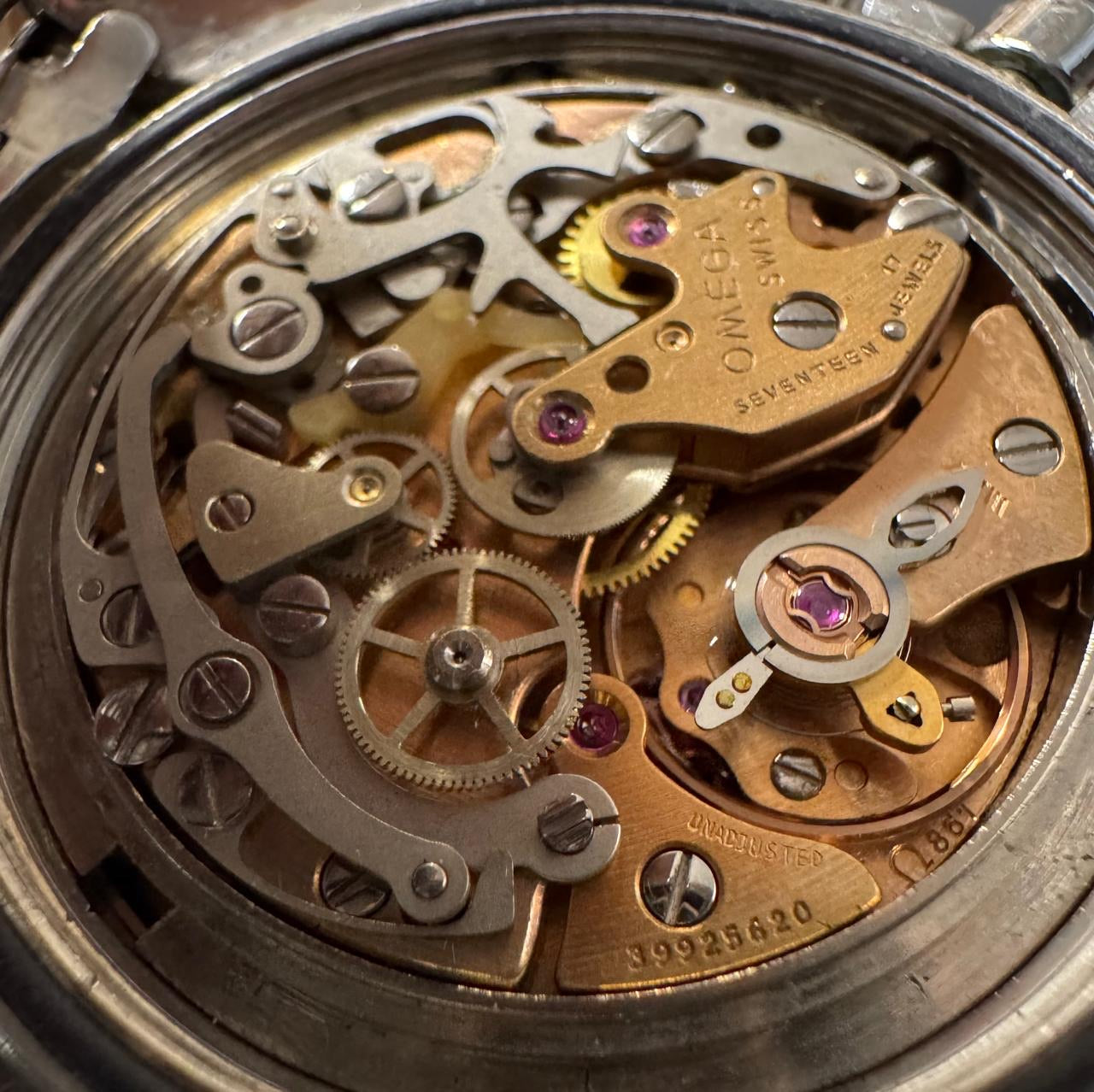 The movement was professionally serviced in February 2026 and is running perfectly. All chronograph functions operate correctly, making this a well-preserved and reliable example of the Speedmaster Moonwatch.