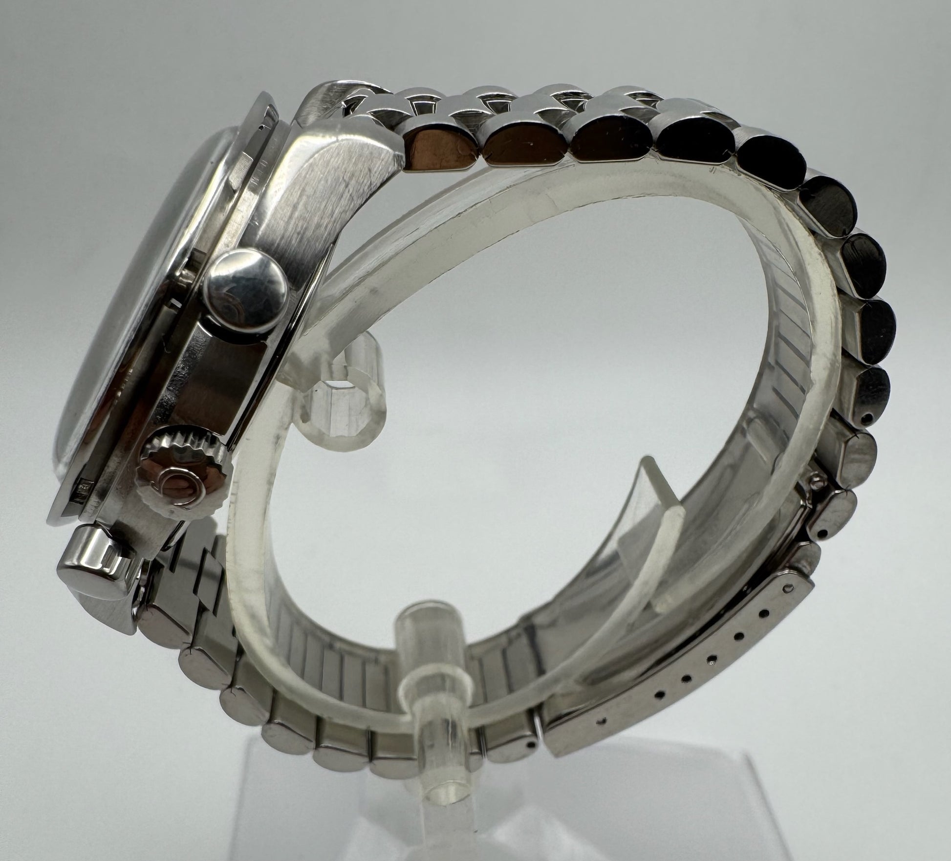 Though the movement's service history is unknown, it performs consistently, running at an average of -10 seconds per day, which is within an acceptable range for a watch of this age. An excellent option for those seeking a well-preserved, classic Speedmaster Reduced with authentic vintage charm.