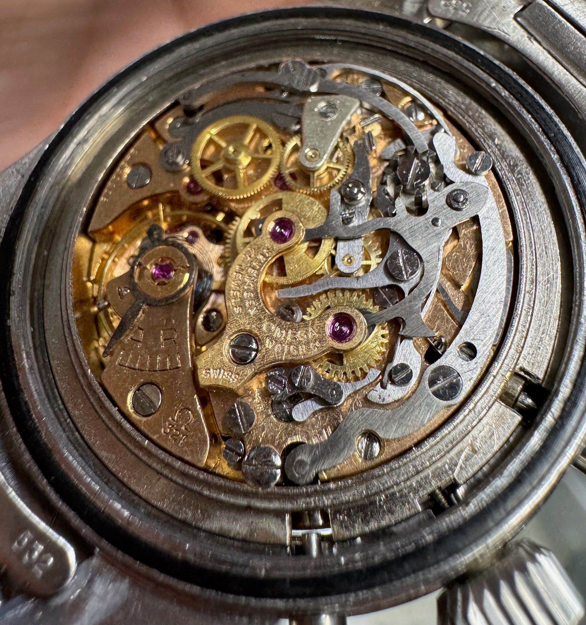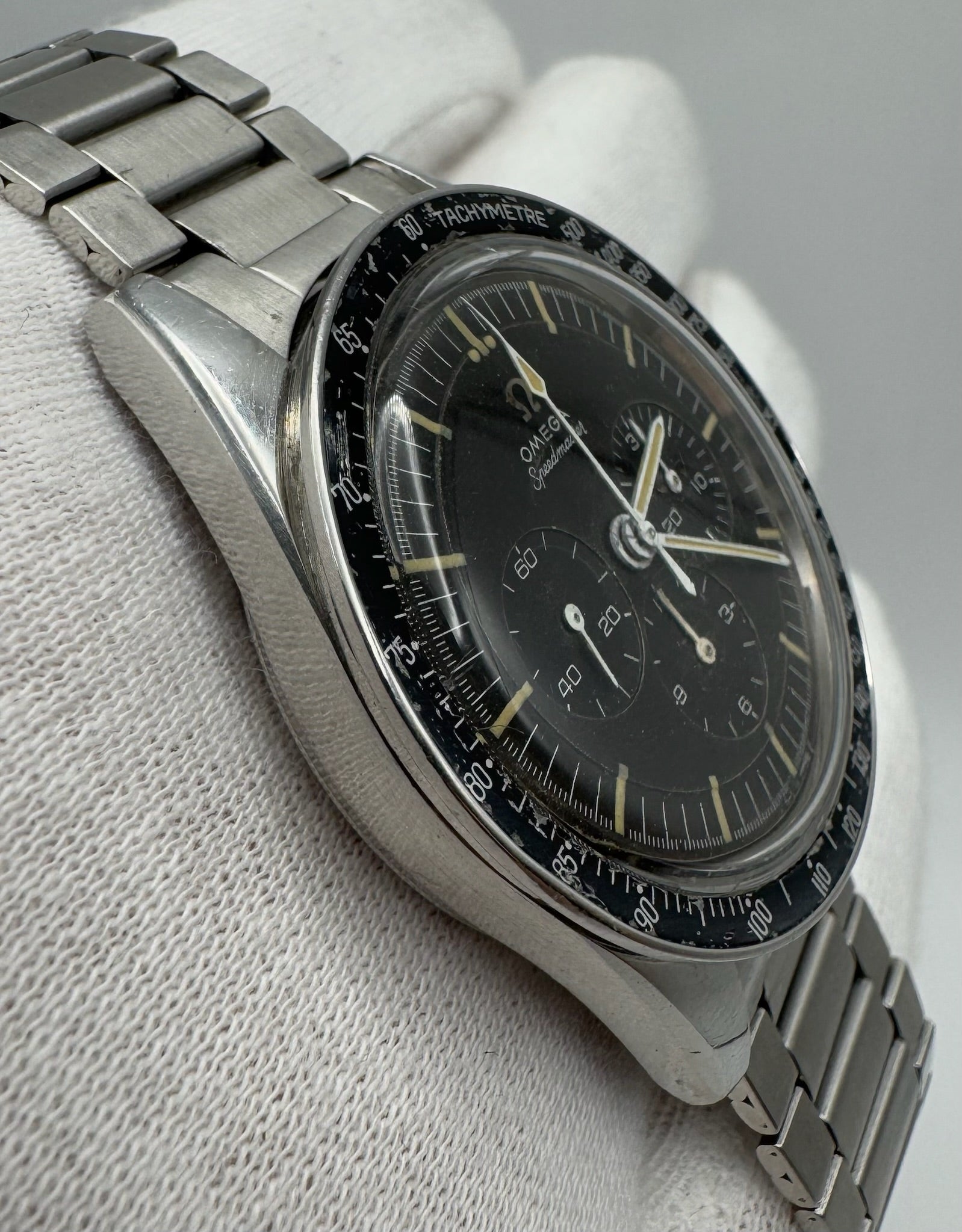 The case remains in good condition, displaying honest wear reflective of its history. Powered by the legendary caliber 321 movement, which was professionally serviced in November 2024, this watch delivers both reliability and precision. The caliber 321 is renowned for its role in the Speedmaster’s legacy and is highly sought after by collectors.