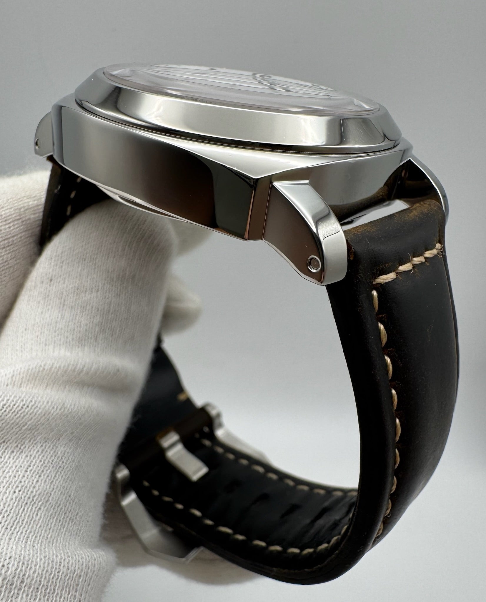 Purchased from the original owner, this example comes complete with its full set of boxes, papers, and the original purchase receipt—making it an ideal piece for both collectors and Panerai enthusiasts seeking a well-preserved and authentic Luminor Marina.