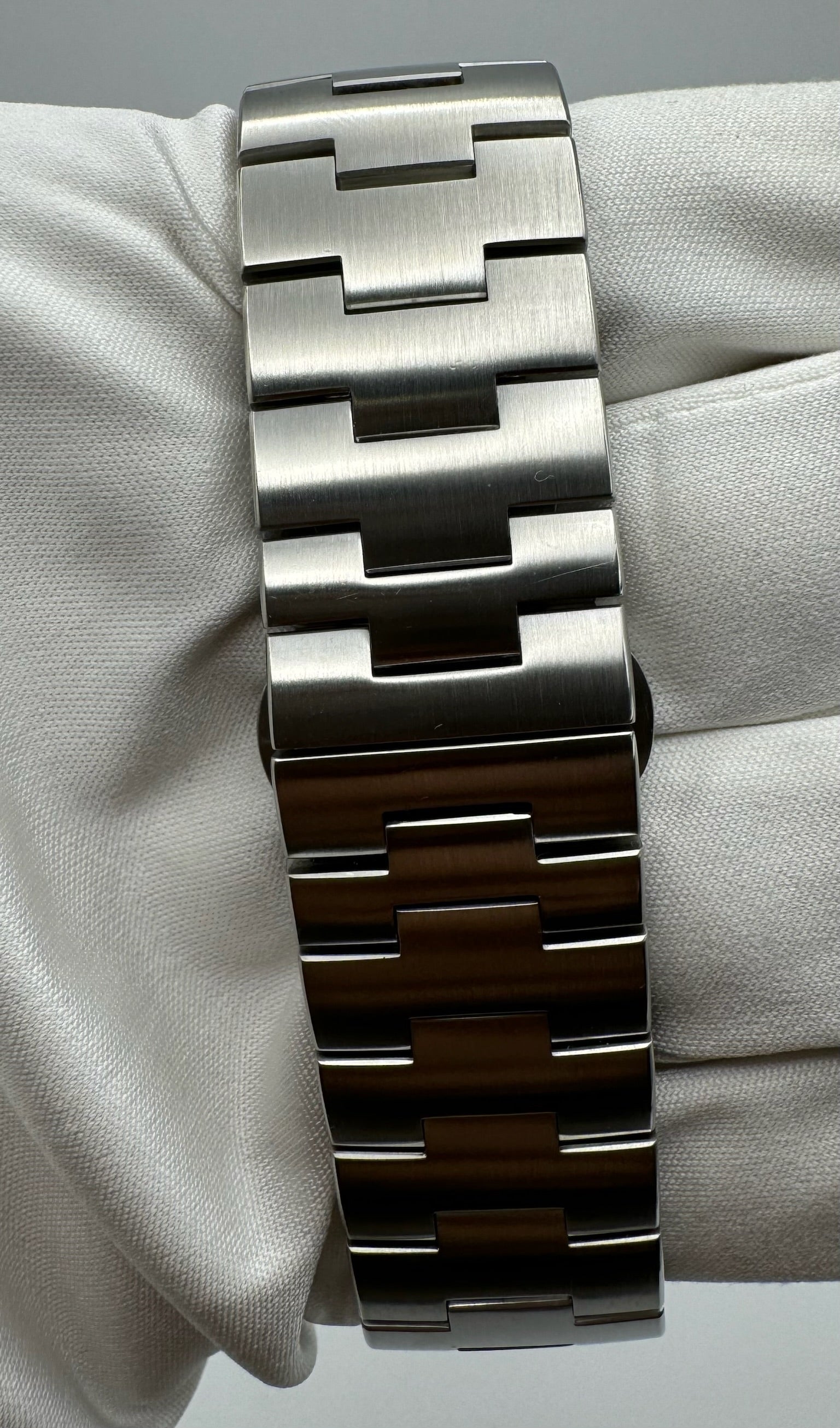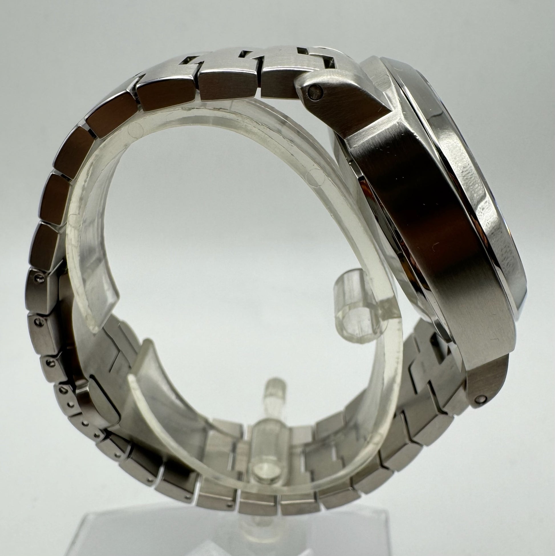 The full steel bracelet includes all links, fitting a wrist up to 9” (22cm). While the movement history is unknown, it has been tested and keeps accurate time. This piece comes with its original box and papers, dated 2008, making it a complete and desirable addition to any collection.