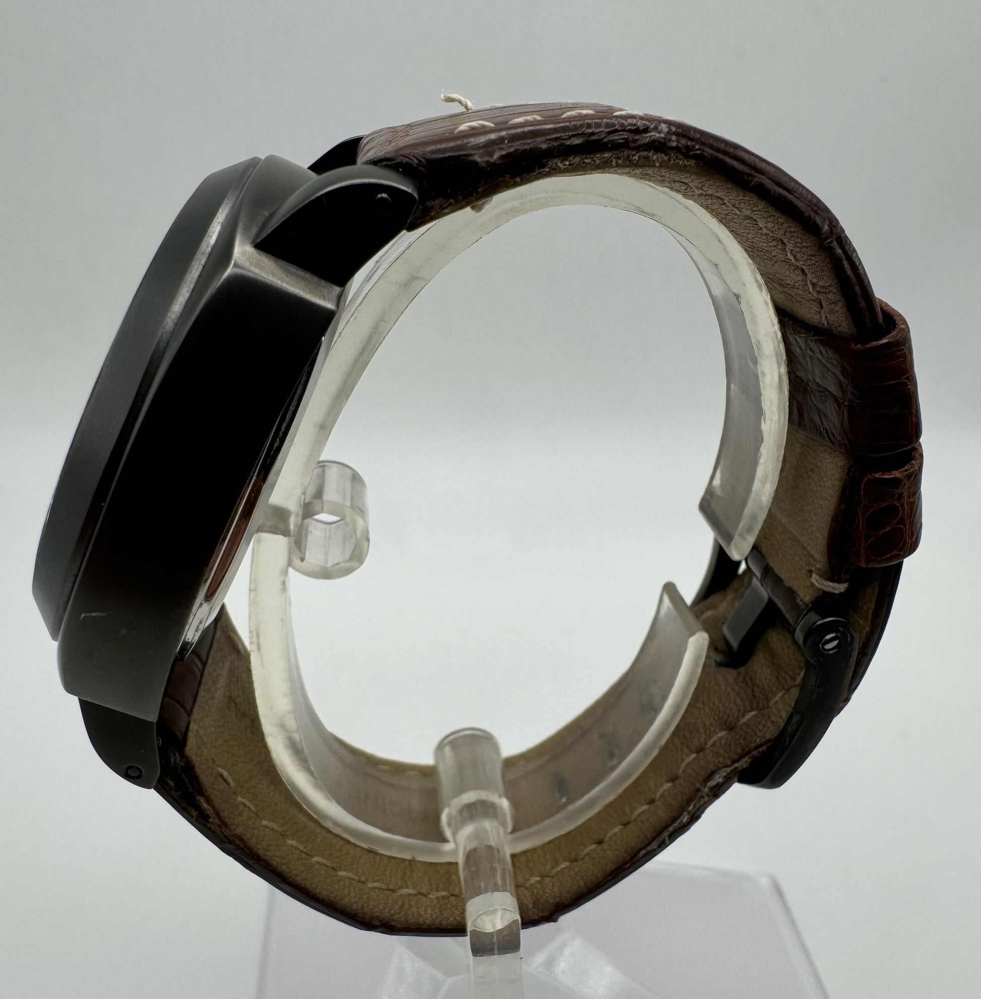 The PVD coating on this watch remains remarkably strong, displaying minimal wear and tear. Unlike many similar pieces that often show significant signs of use, this PAM26 boasts only light scratches and no dings, preserving its robust and sleek appearance. The black original dial is in excellent condition, maintaining the watch’s authentic and pristine look.