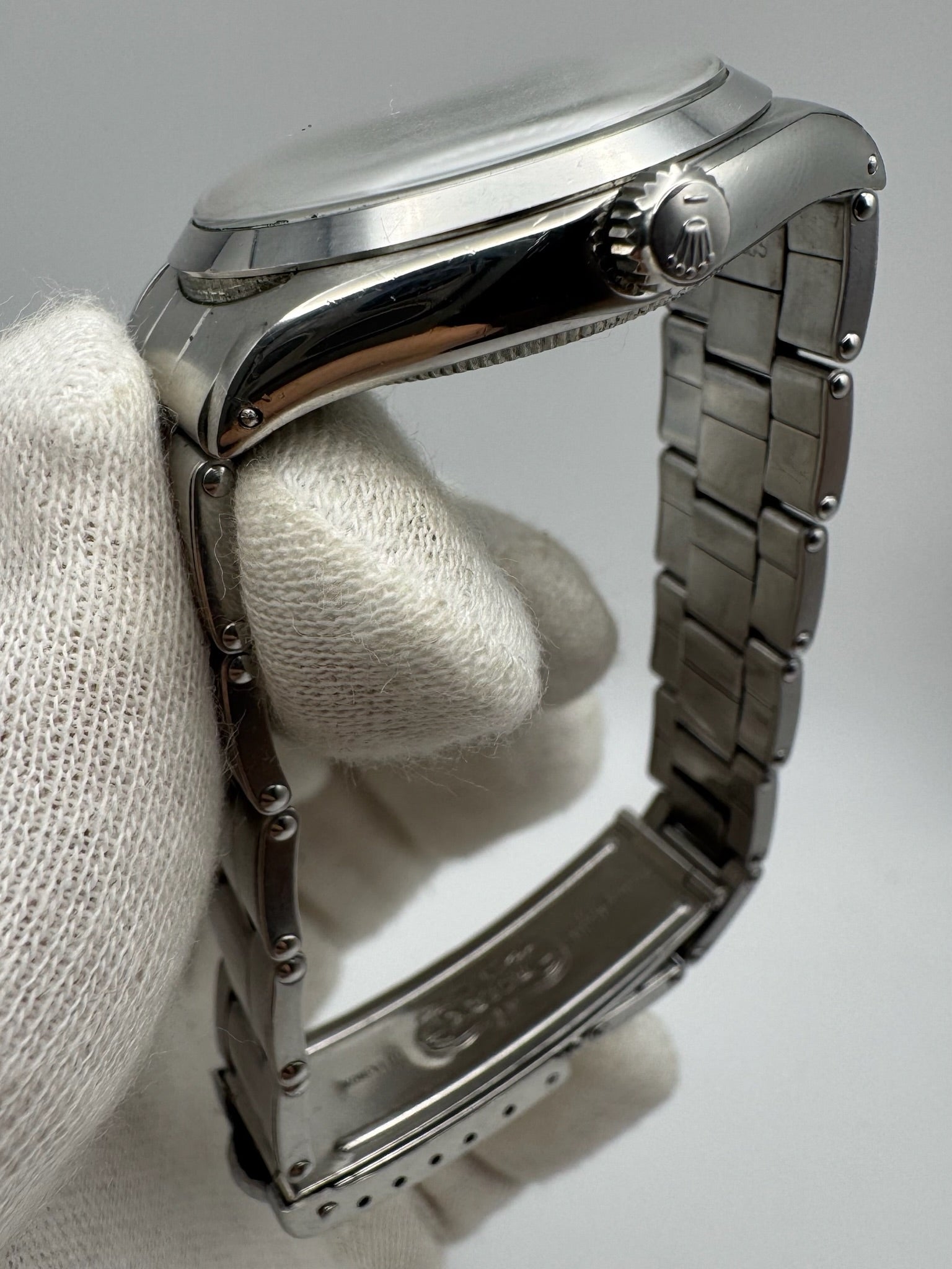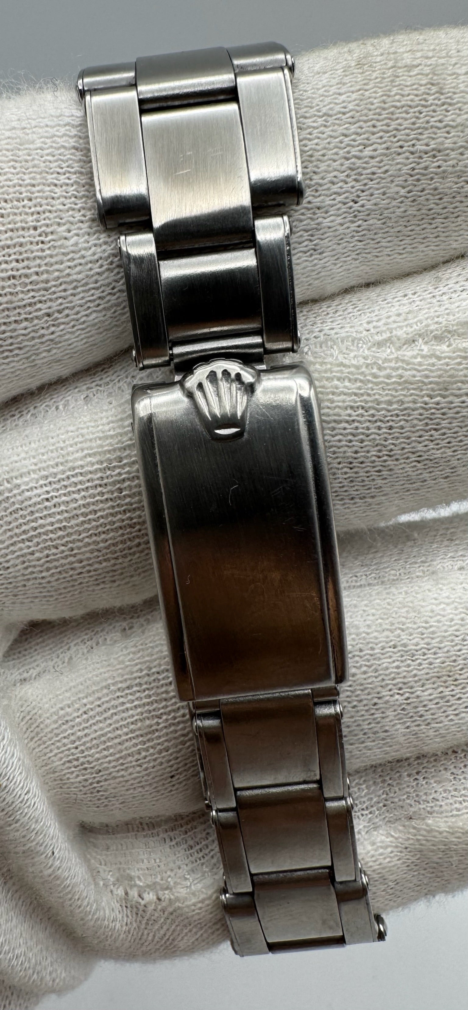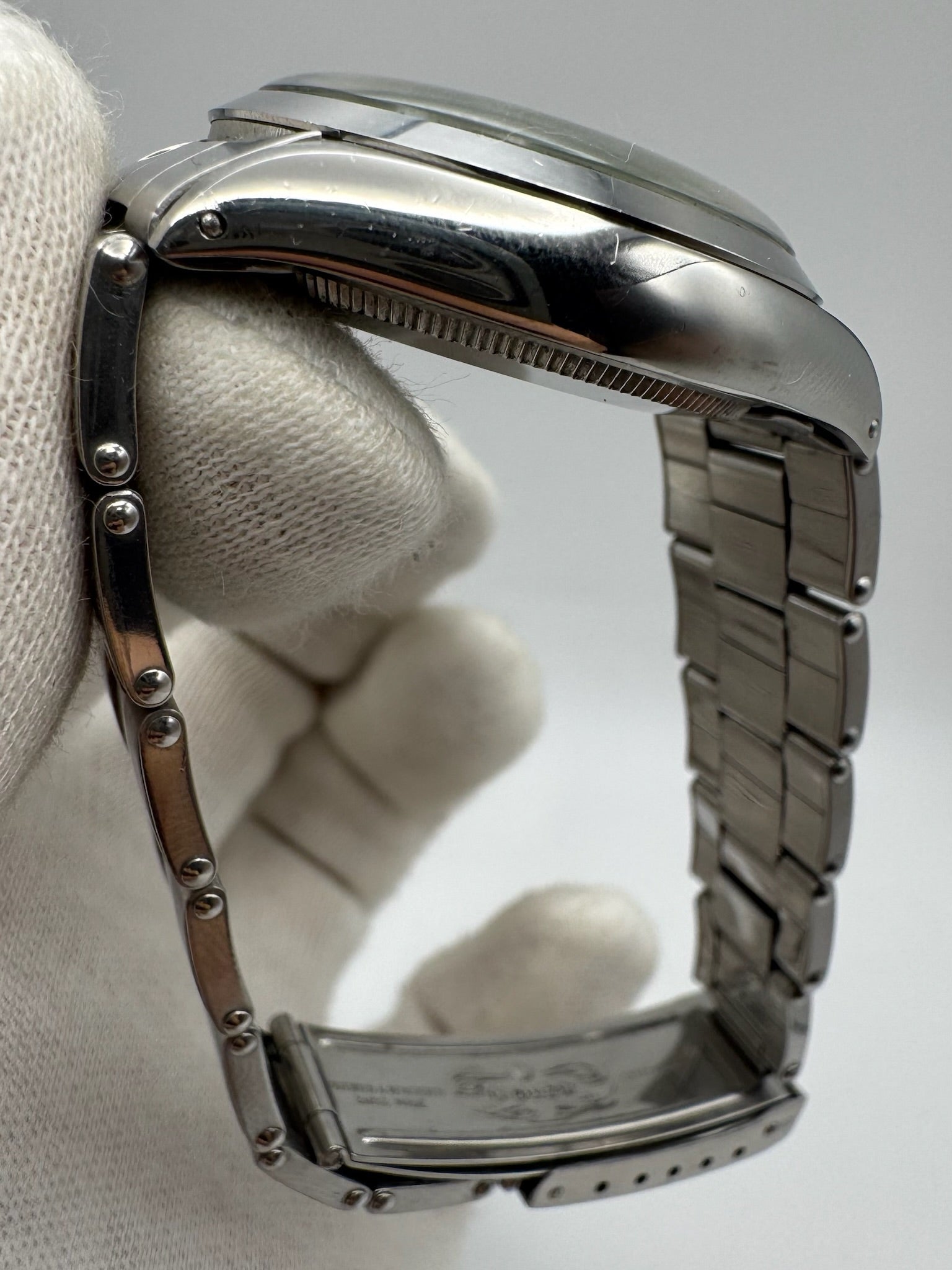 The original oyster riveted bracelet is equally well-preserved, showing virtually no stretch and retaining all 12 links. All case numbers are perfectly visible and intact, with a 3.6 million serial placing production around 1972.