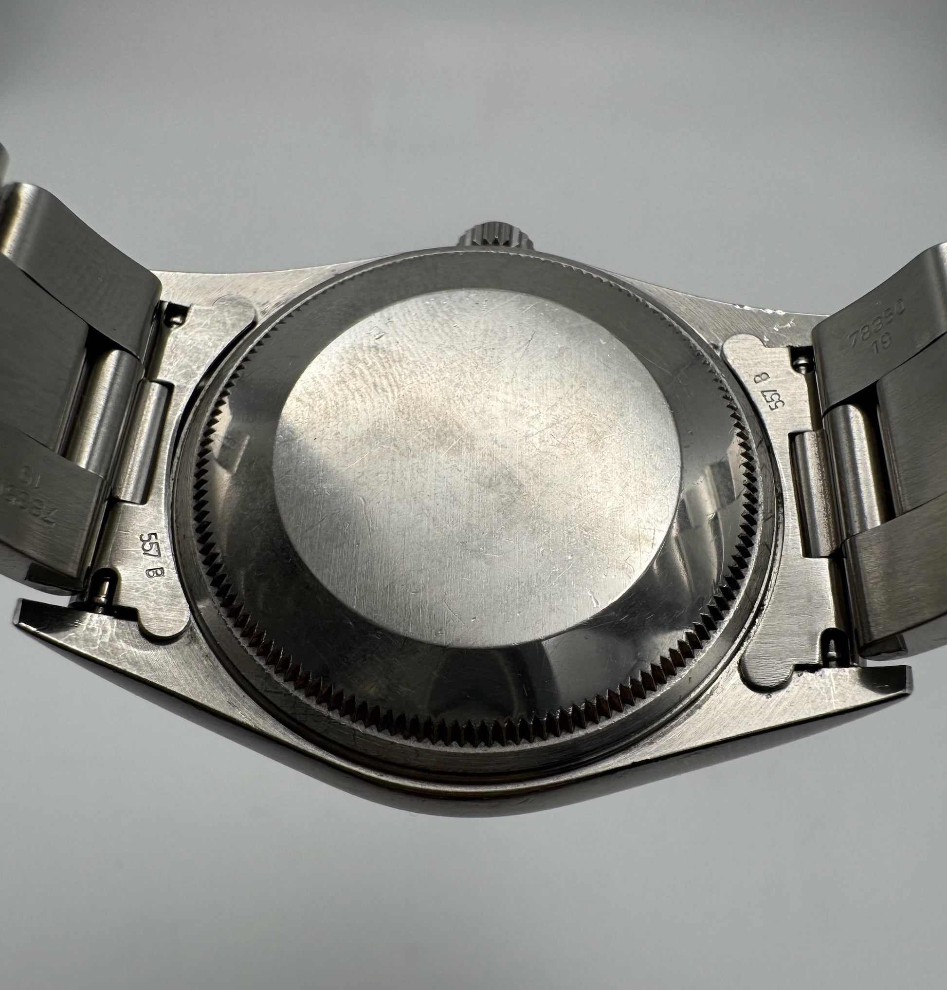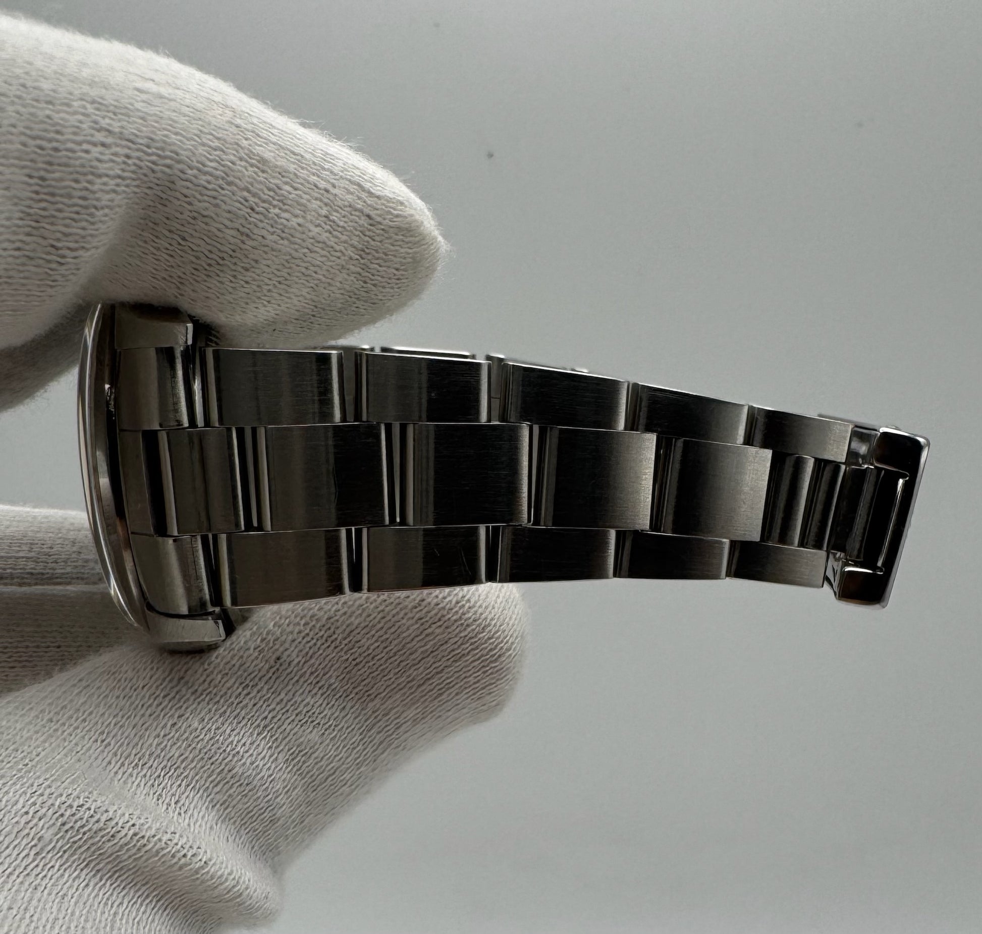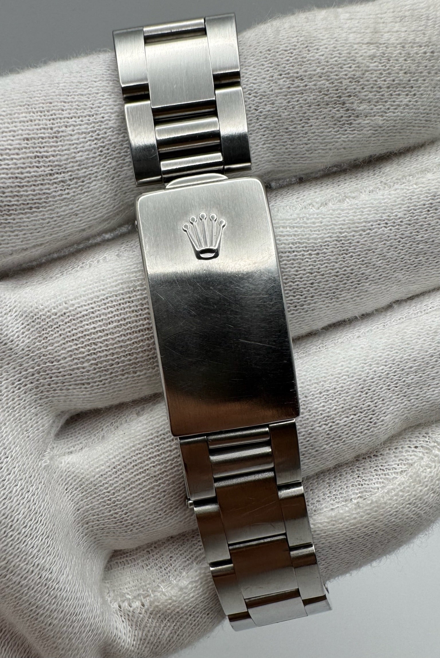 The original blue dial is flawless, offering a vibrant and clean presentation. The Oyster bracelet is in excellent condition, showing virtually no stretch, and features 12 links to comfortably fit most wrists.