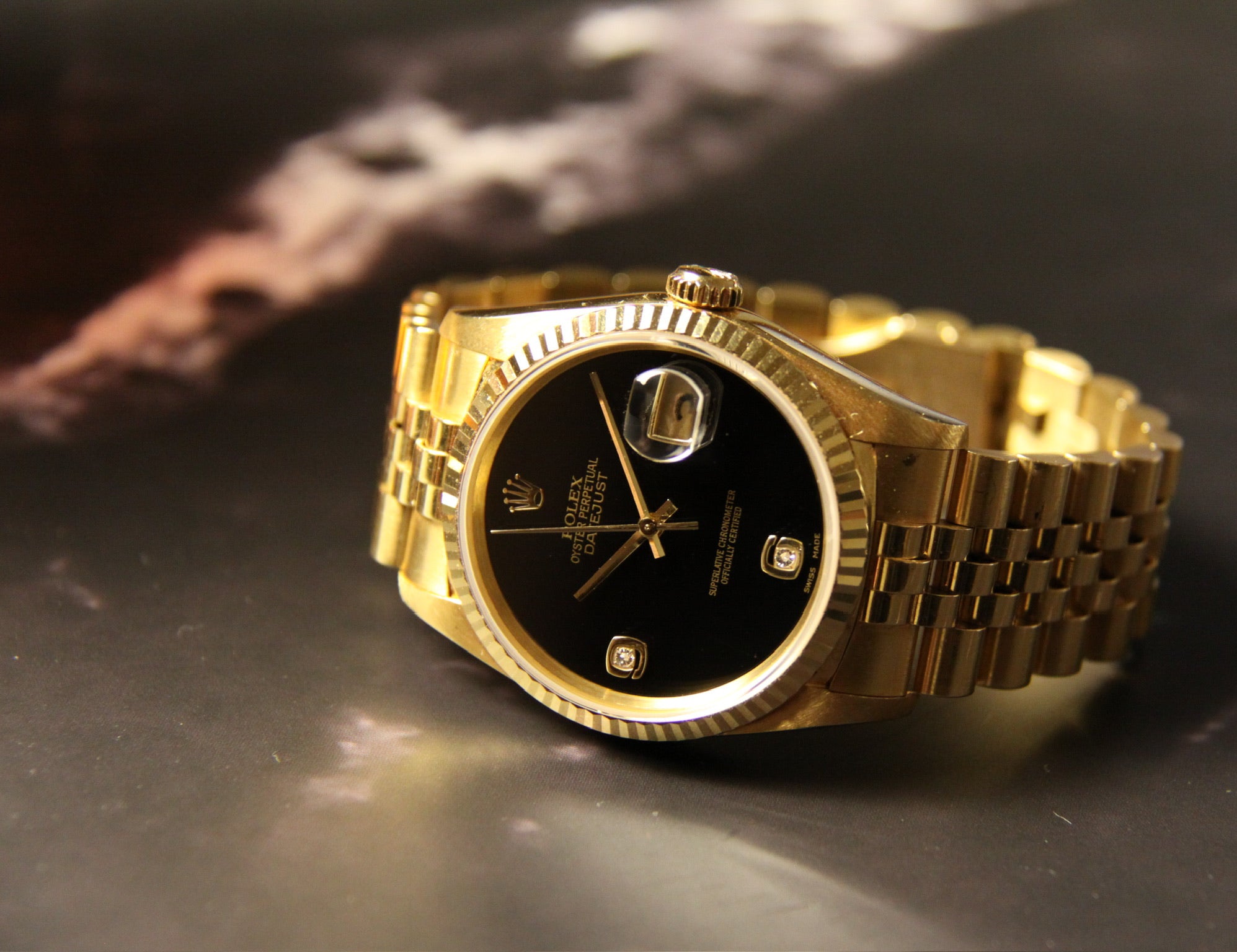 Rolex Datejust 16238 Yellow Gold with Rare Black Onyx Diamond Dial