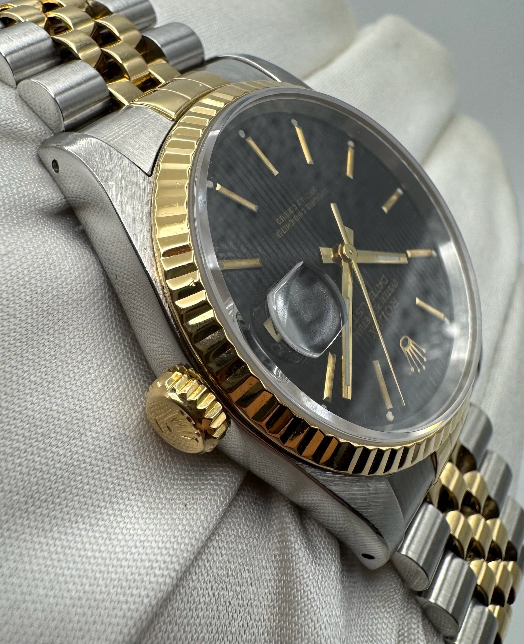 Rolex Datejust 16233 Steel and Yellow Gold with Rare Black Tapestry Dial
