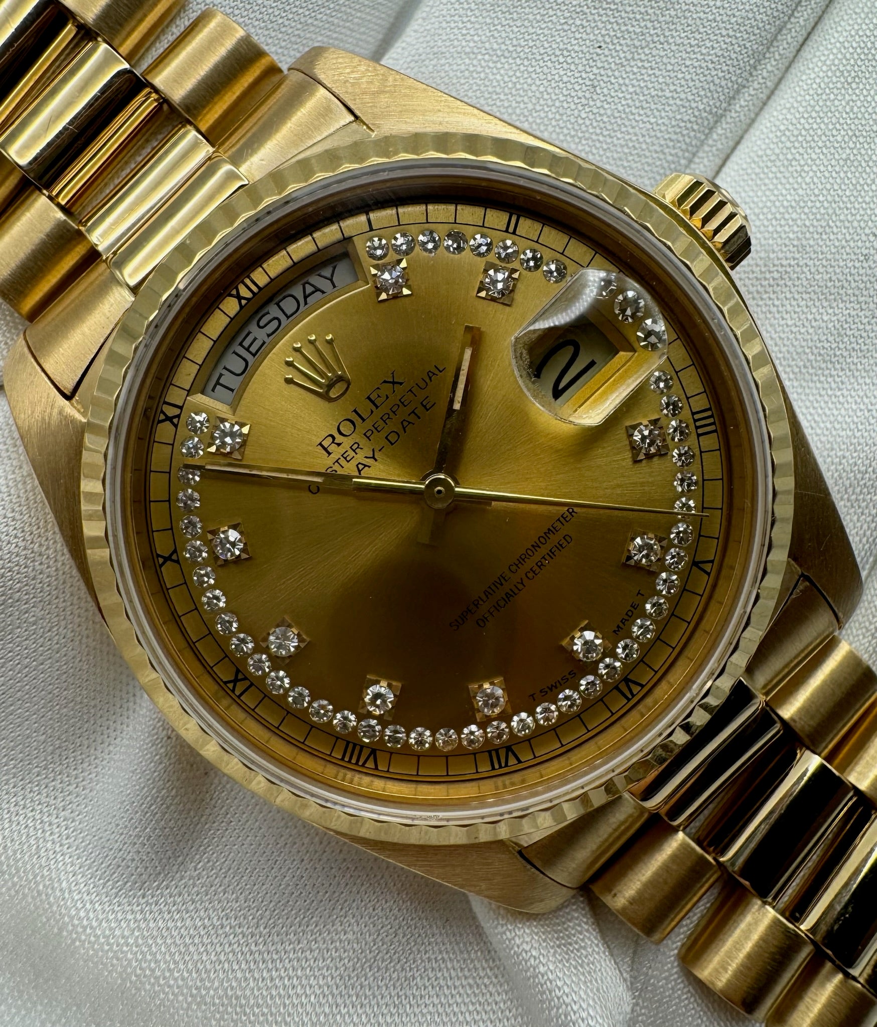 Rolex Day-Date 18038 with Rare Factory Diamond String Dial