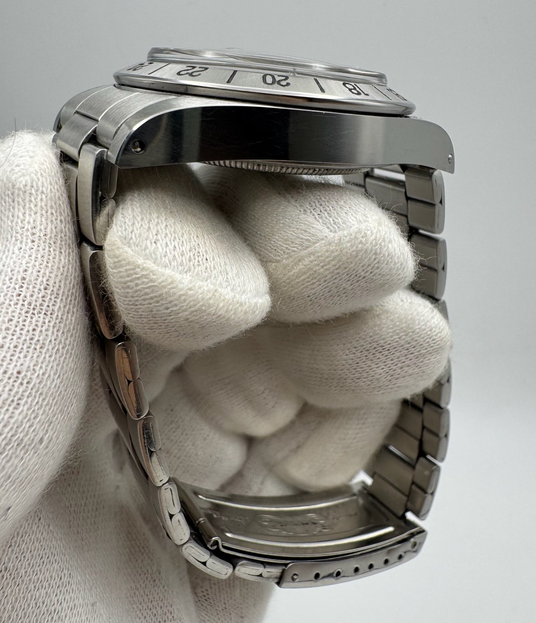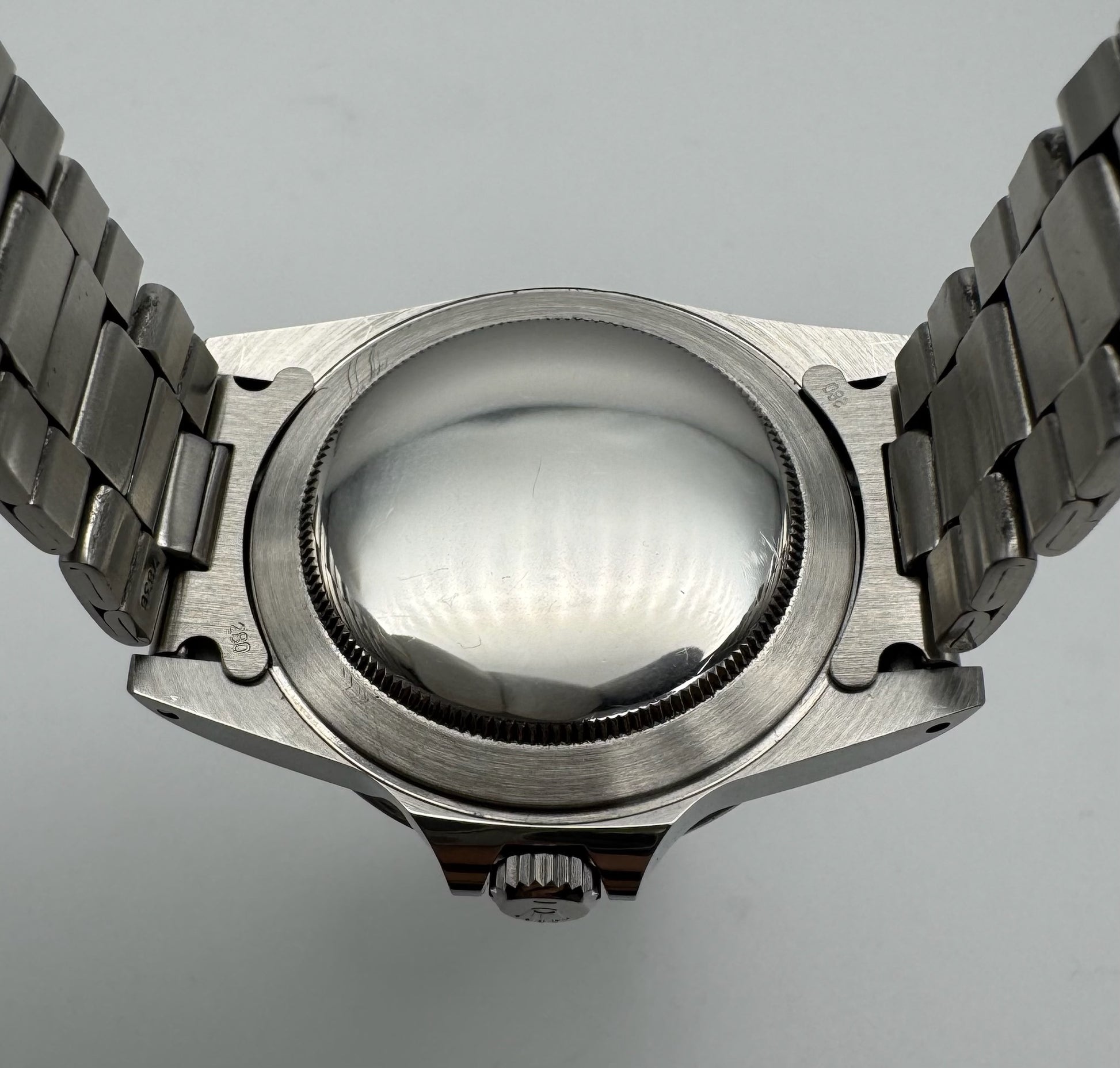 The stainless steel case presents in outstanding shape, featuring sharp lugs, crisp bevels, and a well-defined bezel. It may have been professionally polished to Rolex standards, as the lines remain sharp and the factory bevels are clearly preserved. The original period-correct bezel is equally well-preserved, showcasing its depth and precision.