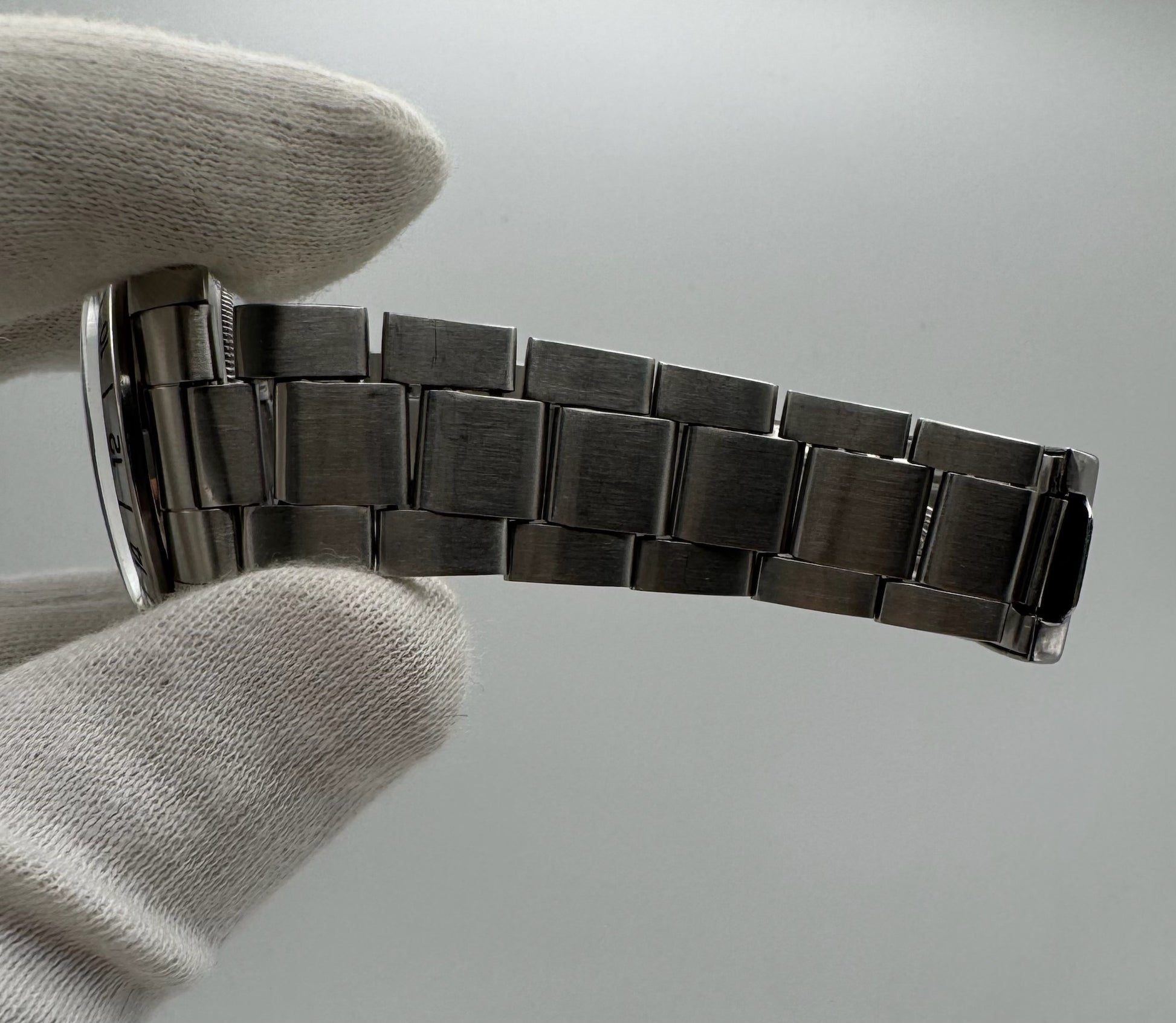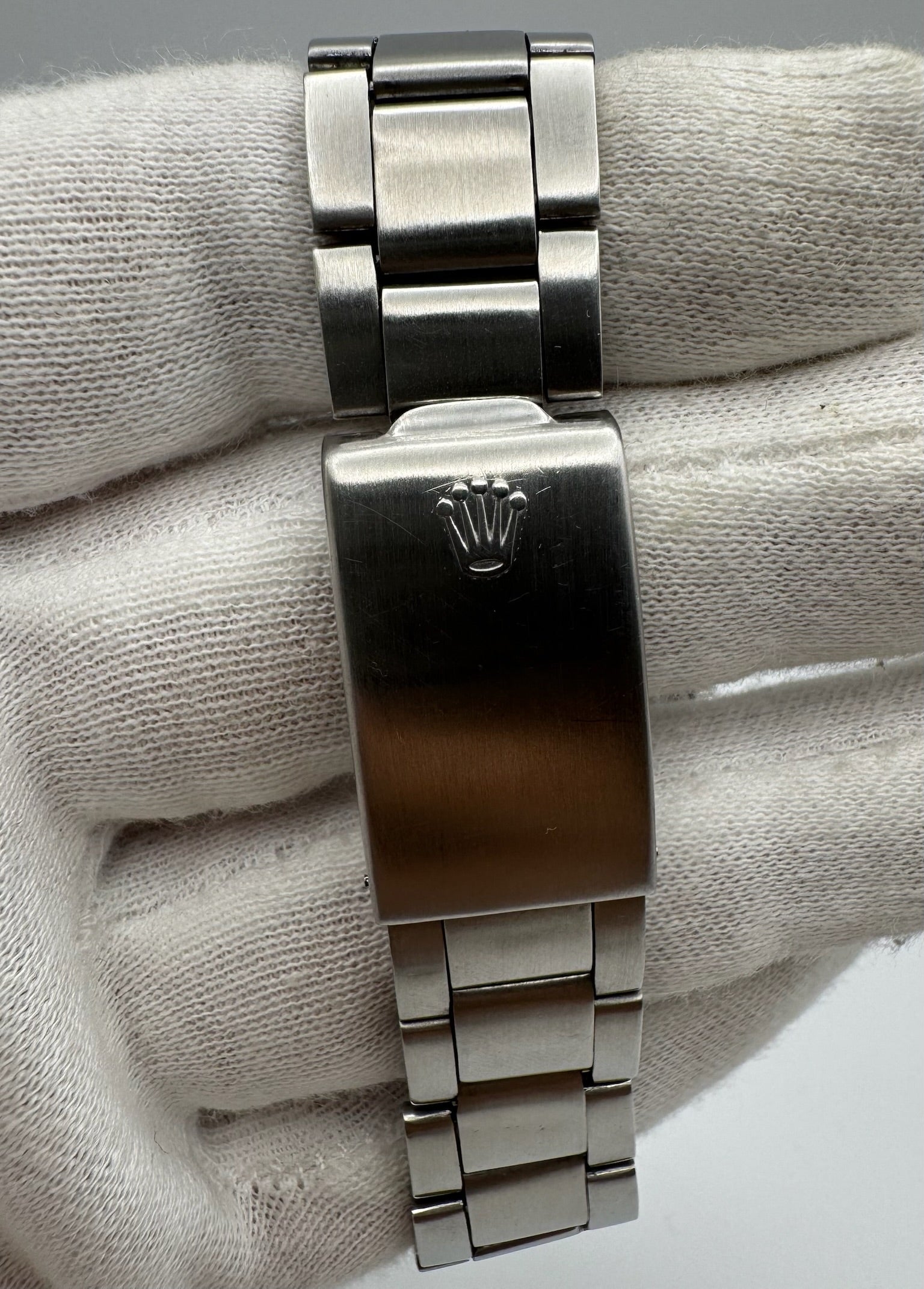 Its original folded-link Oyster bracelet remains exceptionally tight, with all 13 links intact and showing almost no stretch—a rarity for a model of this age. The movement was fully serviced in September 2025, ensuring accurate performance. During service, gaskets were replaced and the watch was pressure tested to 3ATM (30m).