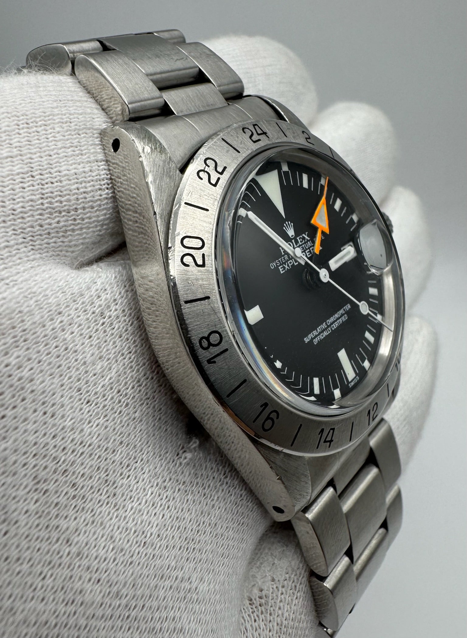 A favorite among collectors, the 1655 reference continues to command strong market interest due to its distinctive design, historical appeal, and limited production window. This example features an Oyster bracelet in excellent condition, composed of 11 links and fitting up to a 7.5” (19cm) wrist. Additional links can be made available upon request.