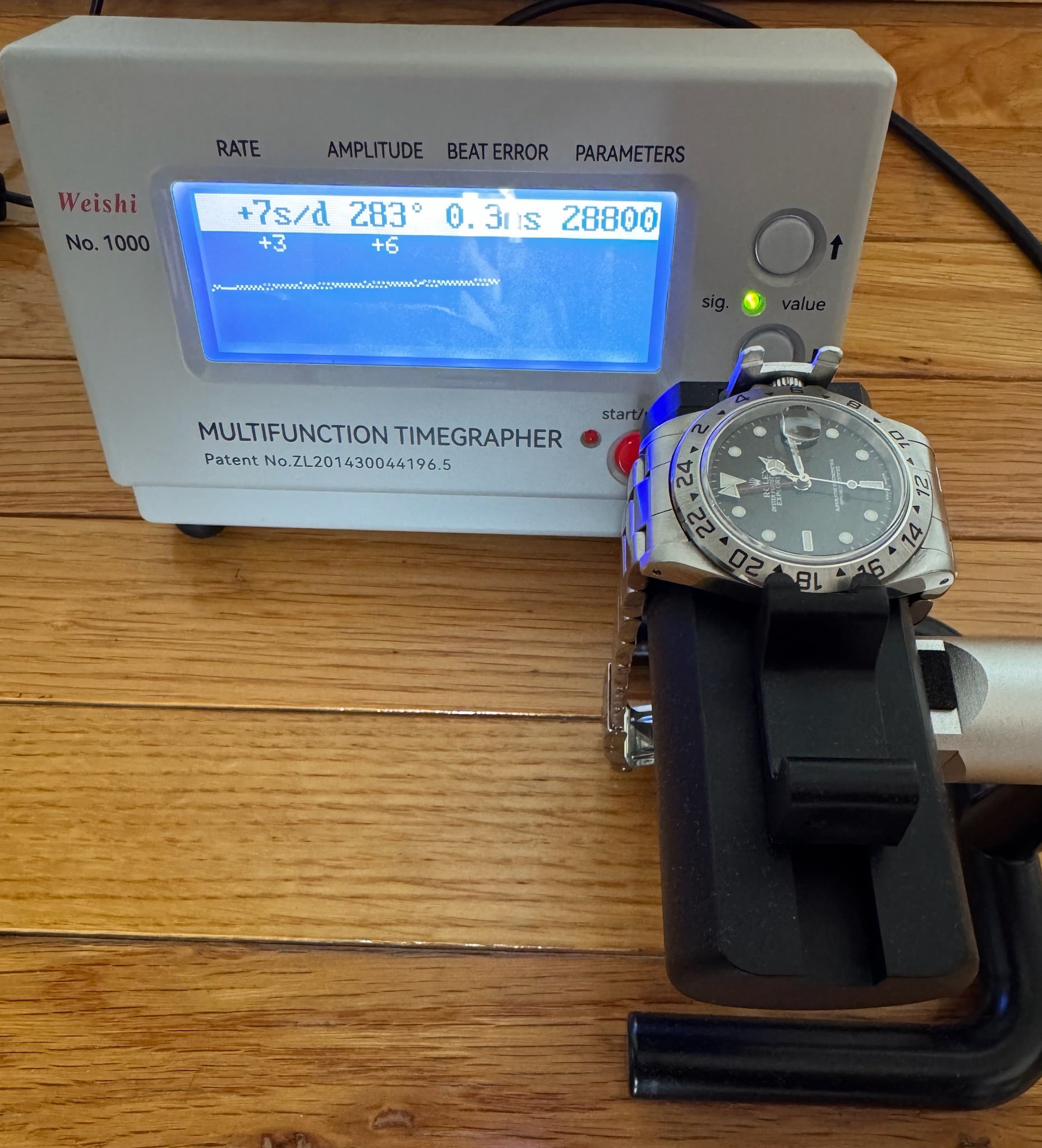 The automatic movement has been tested and is running accurately. A well-kept and complete example of one of Rolex’s most versatile sports watches.