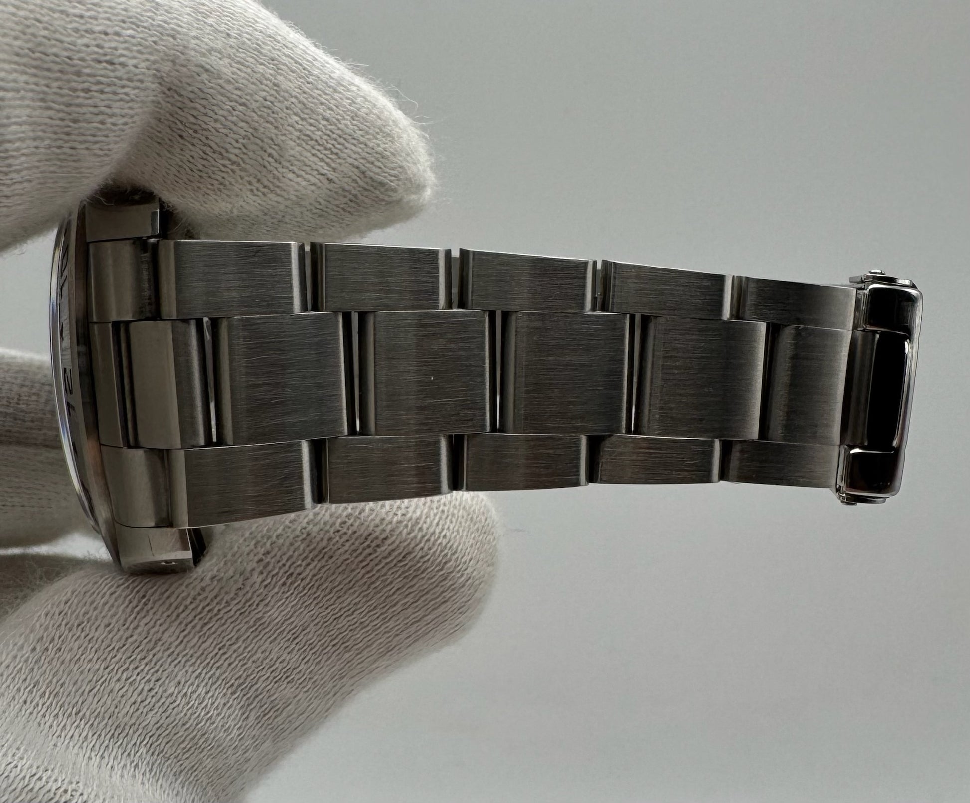 The Oyster bracelet features 12 solid links and shows no stretch, offering a firm and secure fit.