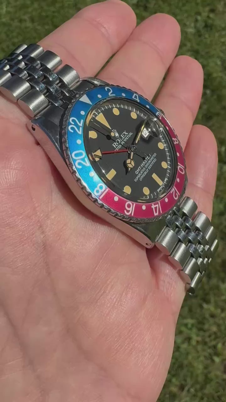 The movement runs strong, and all case numbers are clearly visible. This 1675 GMT-Master is a well-preserved and distinctive piece, offering both historical significance and collector appeal.