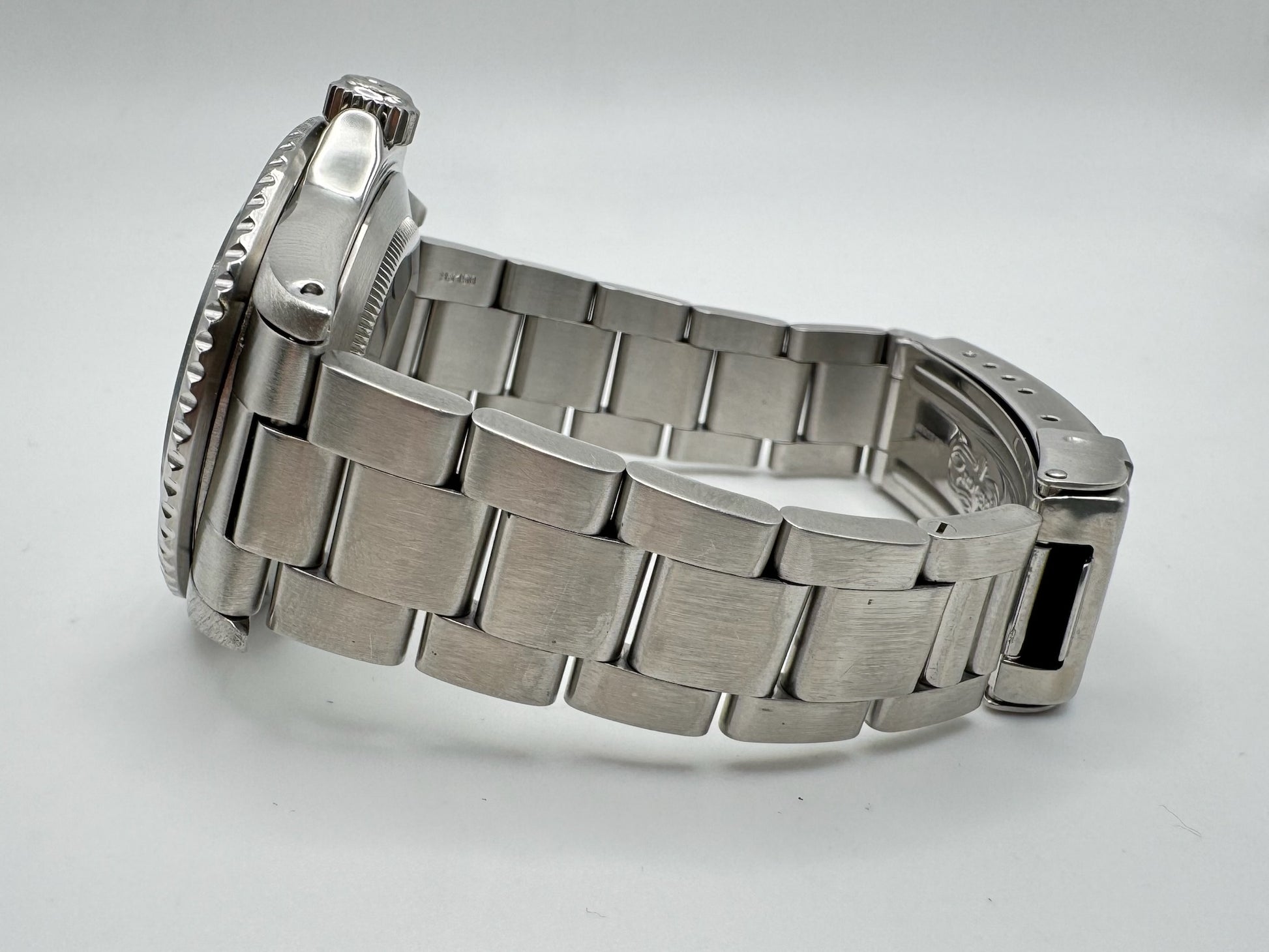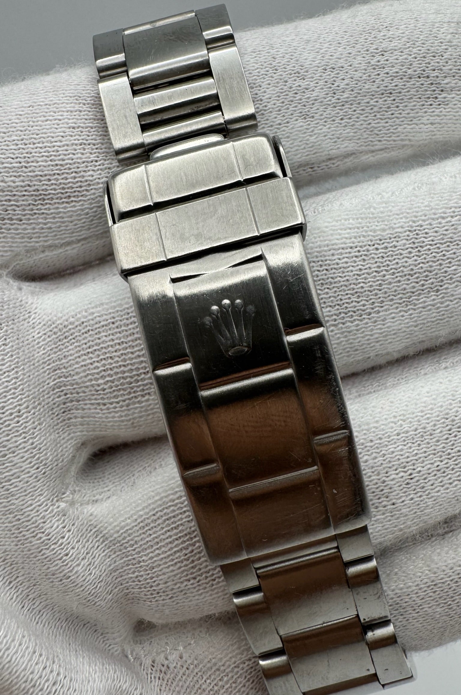 Fitted with its original bracelet featuring 11 solid links and correct 593 end links, the watch remains sturdy with no stretch, ensuring a secure and comfortable fit. The movement has been professionally serviced by our certified Rolex watchmaker in January 2025 and runs flawlessly.