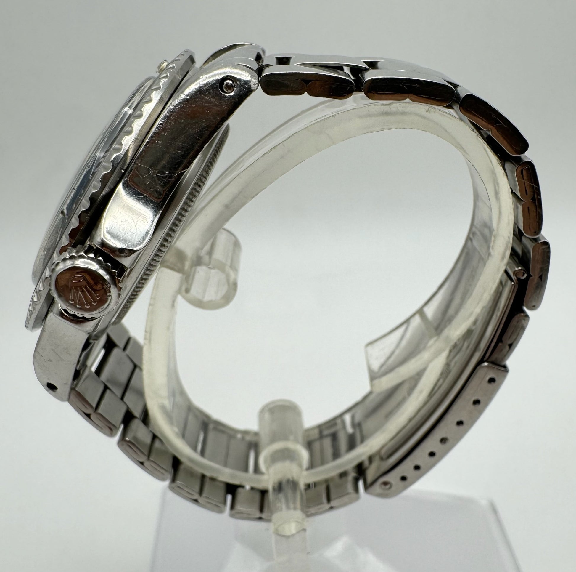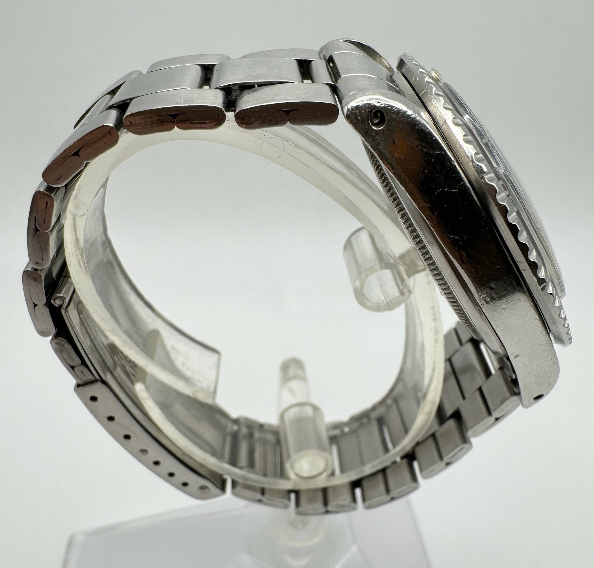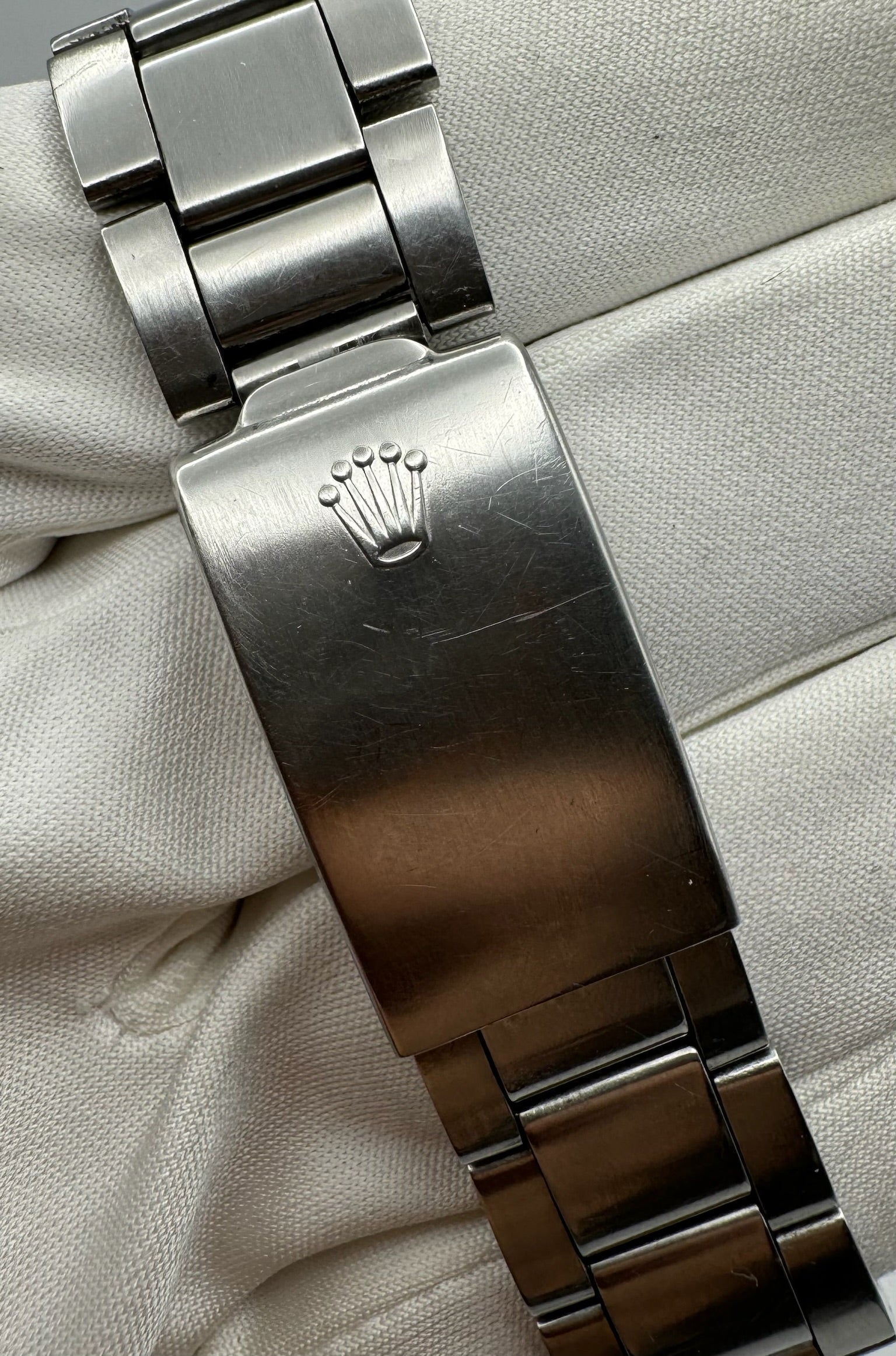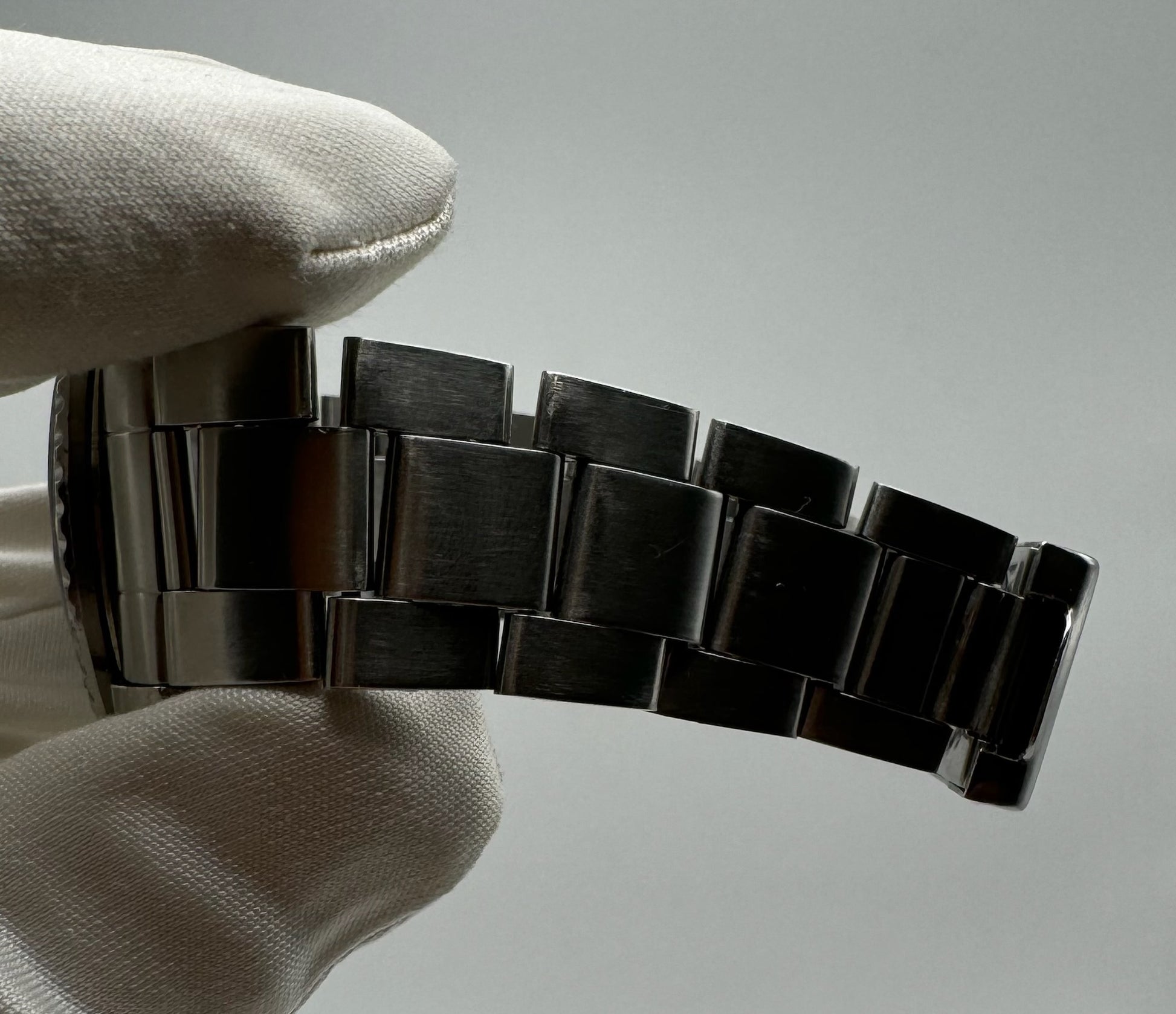 The ghosted grey insert is another highlight, perfectly aged to enhance the watch’s overall vintage aesthetic. The original oyster bracelet, fitted with 380 end links, shows moderate stretch typical for its age and includes all 12 links, ensuring a comfortable fit.