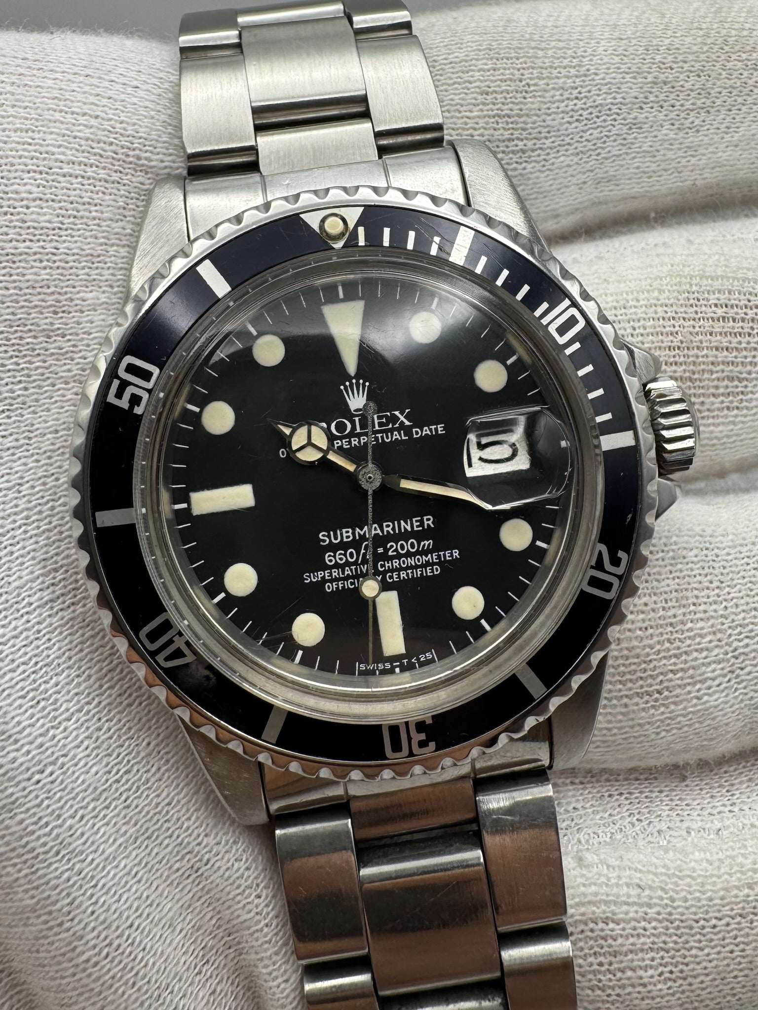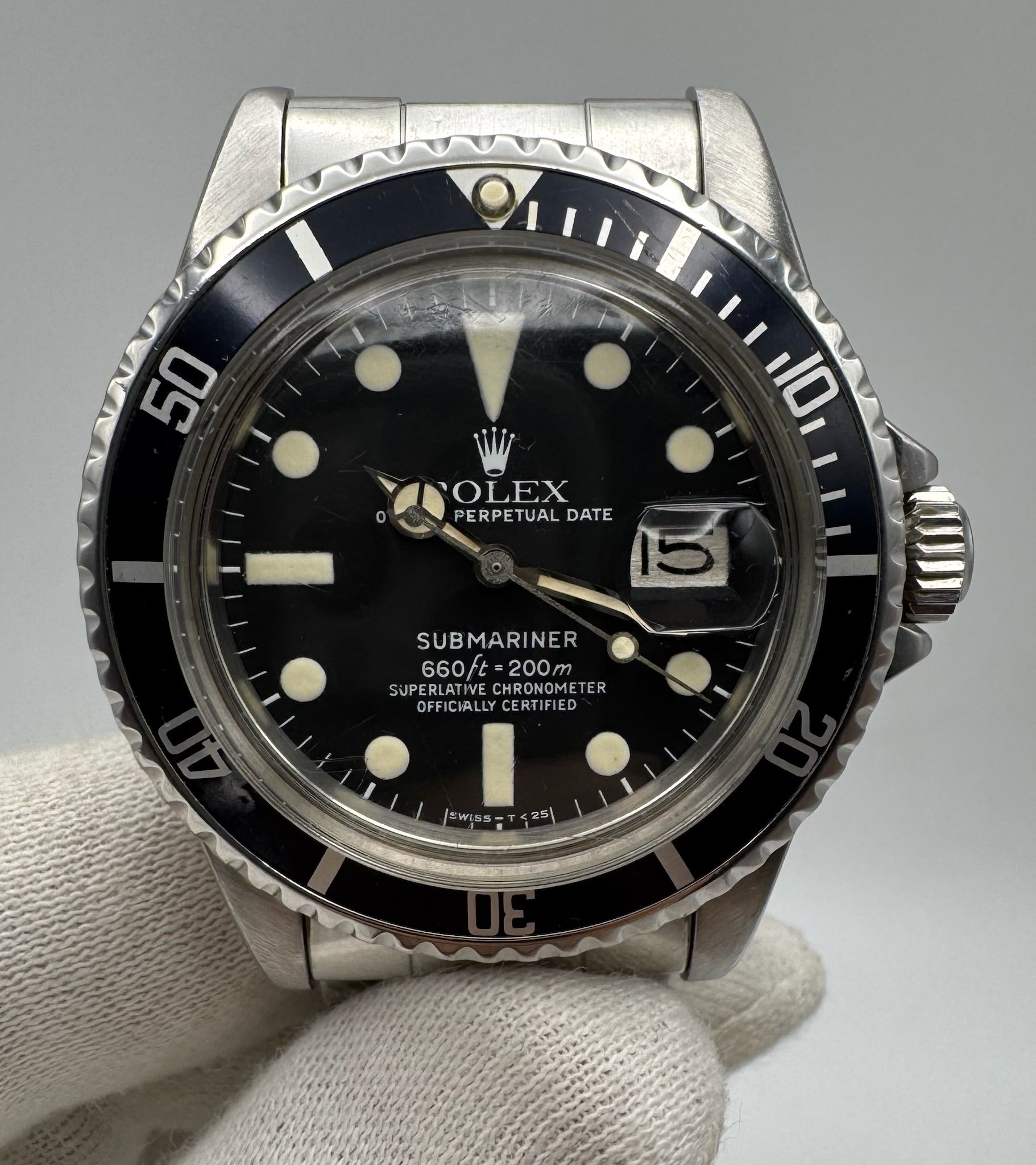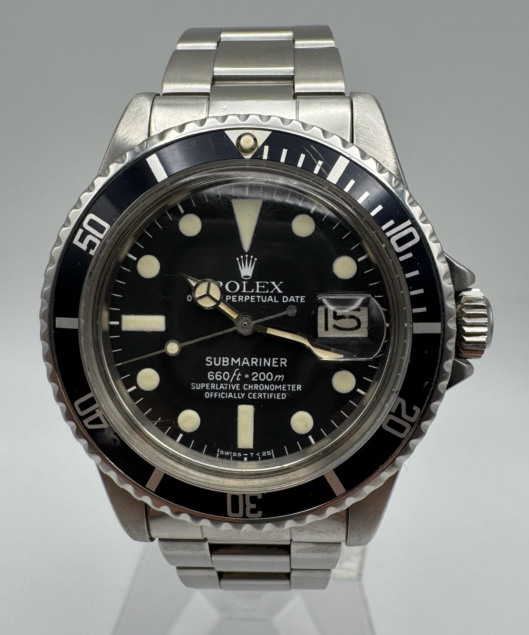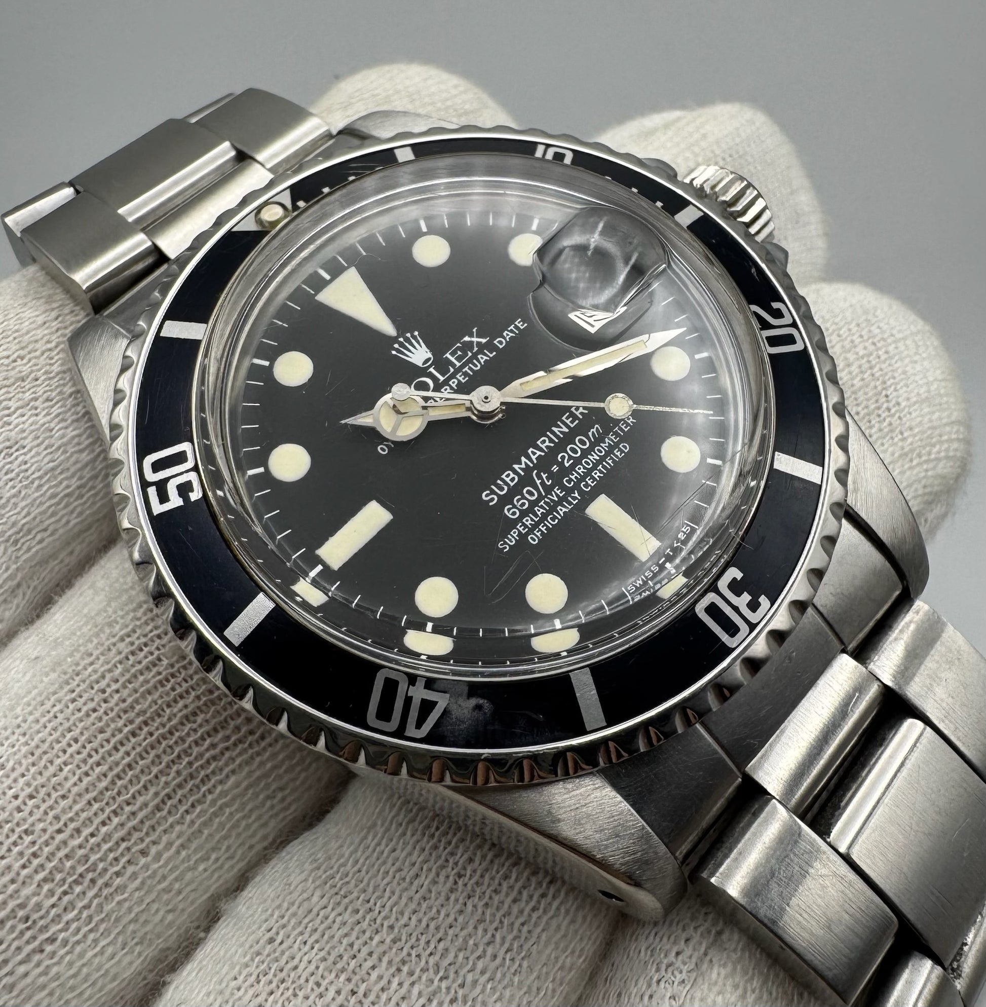 This example is a full steel Submariner 1680 that remains all original and in very nice overall condition. The case features thick, sharp lugs and shows only light signs of wear consistent with careful use. All case engravings are clearly visible and intact, with a 5.3 million serial number dating production to approximately 1977.