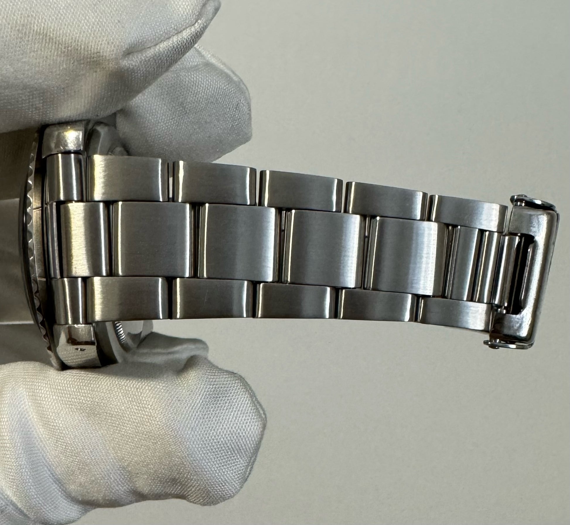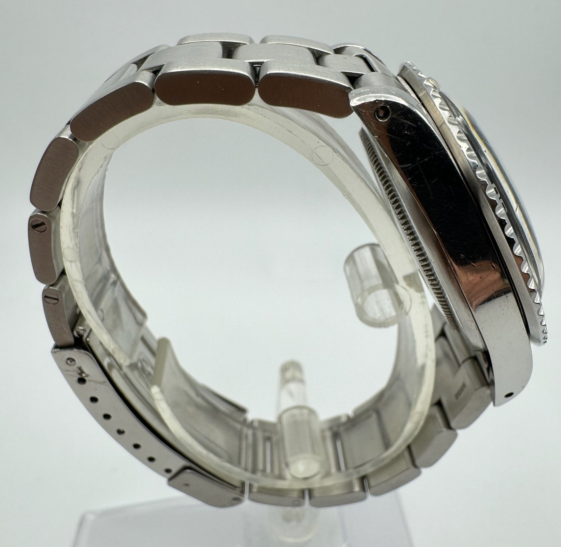Crafted from robust stainless steel, the case measures a versatile 40mm in diameter, perfectly suited for both casual and formal occasions. The vintage allure of this Submariner is preserved in its never-polished case, which maintains the original contours and finishes, reflecting a rich history of exploration and adventure.