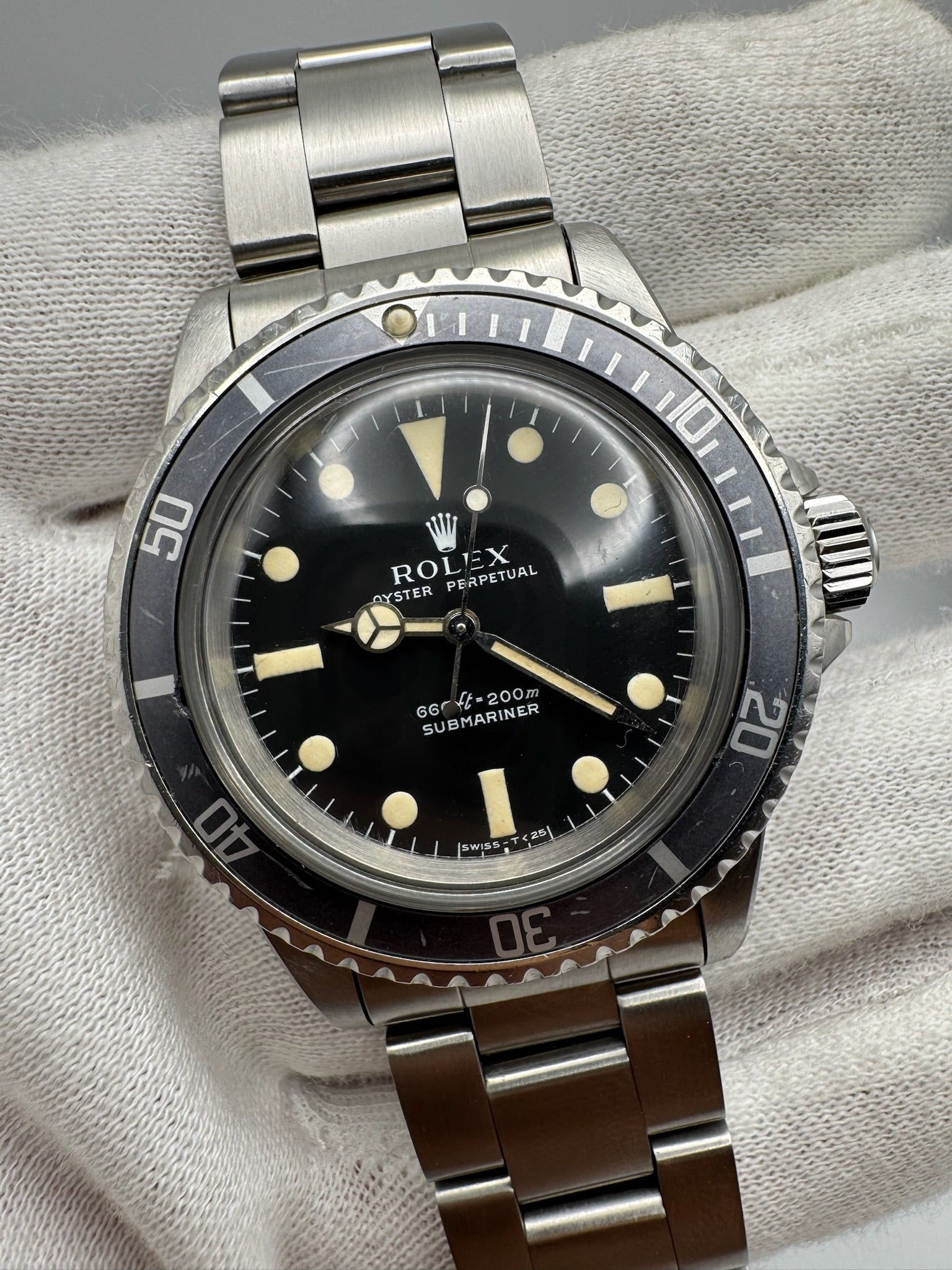 This watch is fitted with a solid link Oyster bracelet (12 links) that exhibits virtually no stretch, an uncommon and desirable trait among vintage models. The bracelet adds a sense of completeness to this already well-preserved Submariner.