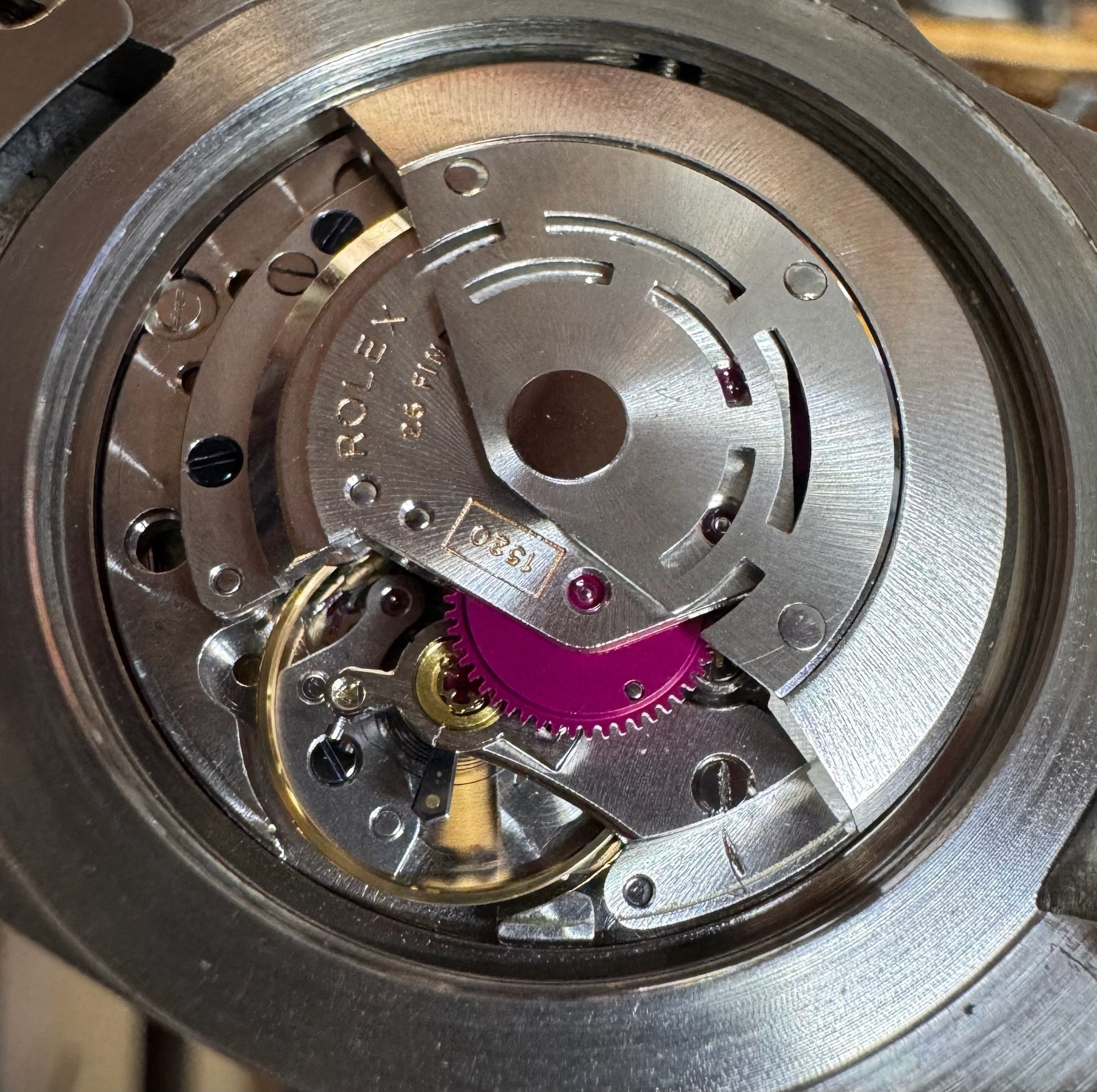 Its stainless steel case retains thick lugs and defined bevels, showing only light wear consistent with age. The original long 5 bezel insert has developed a pleasing fade that complements the dial’s warmth. Fitted with a correct 1968 riveted bracelet with 10 links and minimal stretch, it ensures both comfort and collectability.