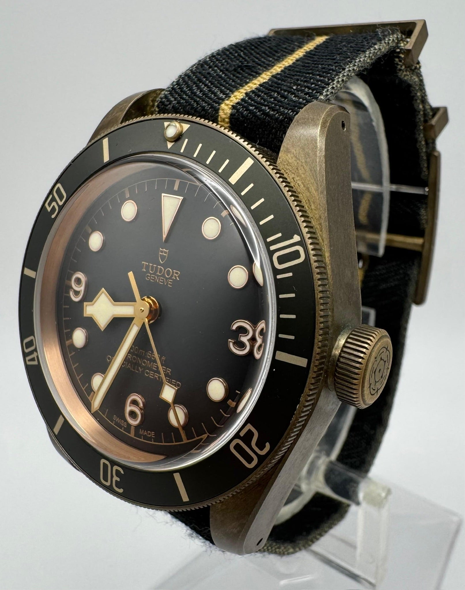 This Tudor Black Bay Bronze reference 79250BA is presented in all-original condition and remains in excellent to near-new overall shape. The 43 mm bronze case has developed an attractive, even patina across its surfaces while retaining its original factory finish and strong case definition throughout.
