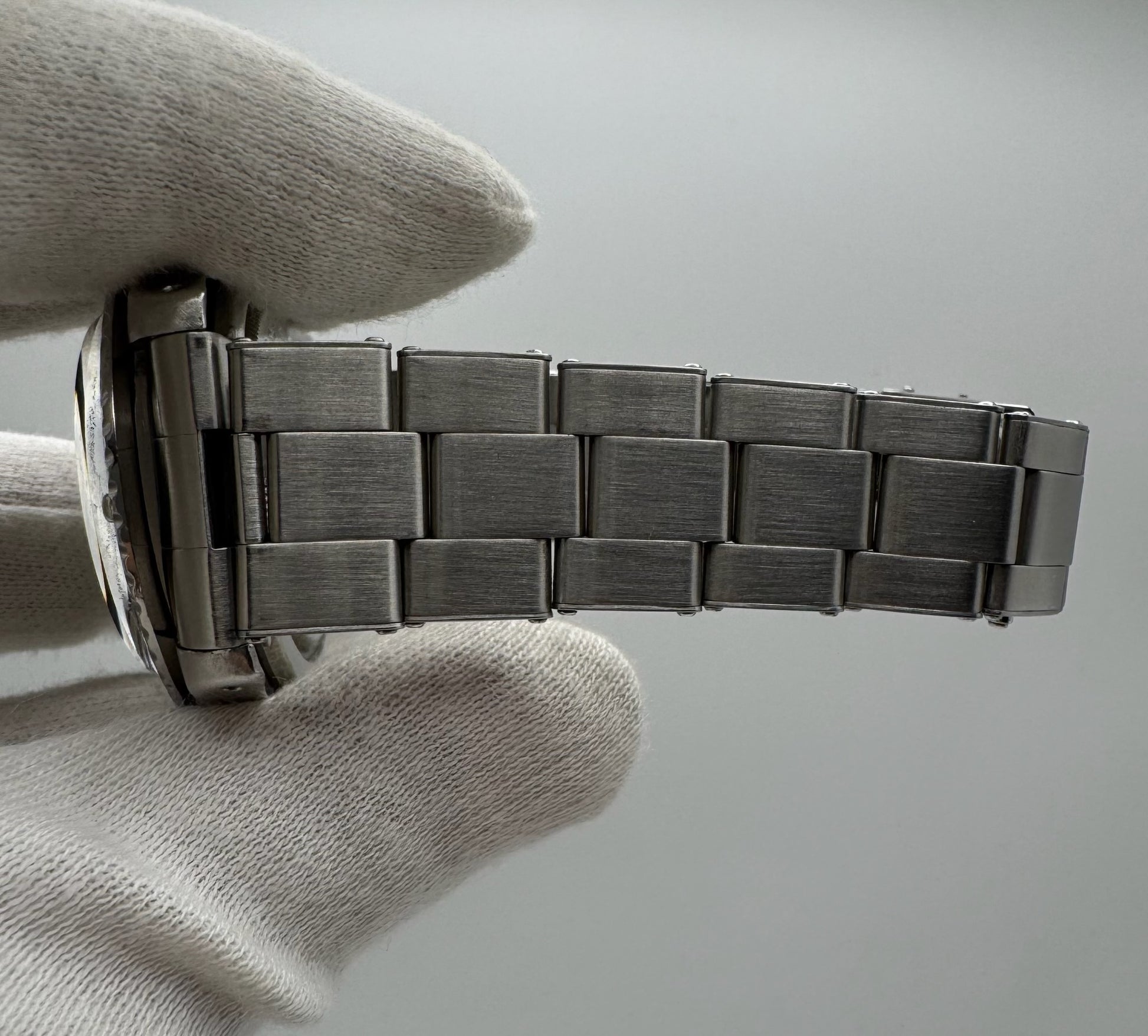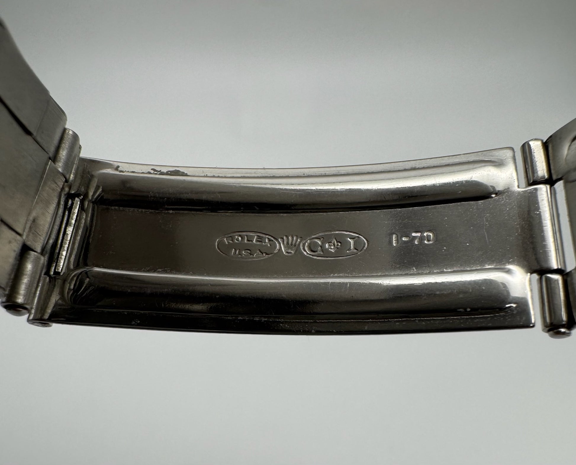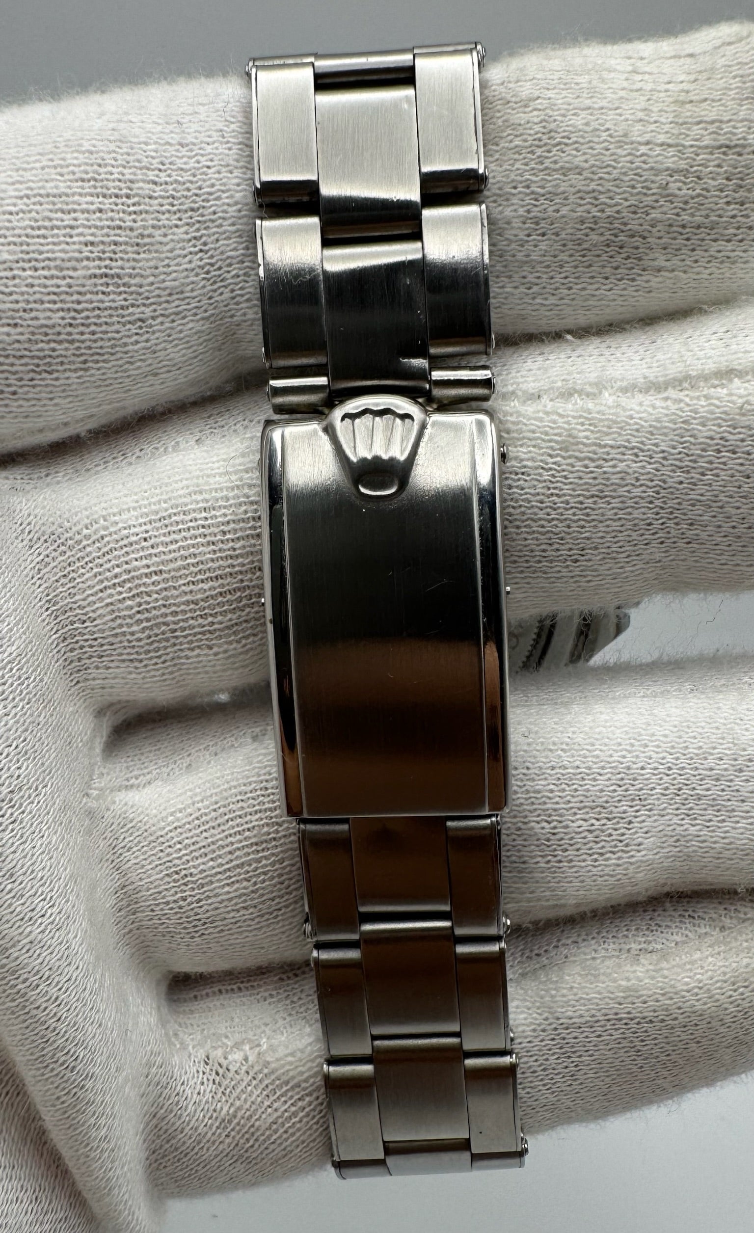 The original riveted Oyster bracelet shows almost no stretch and includes 11 links, fitting comfortably on most wrists. All serial and reference numbers between the lugs are crisp and fully legible.